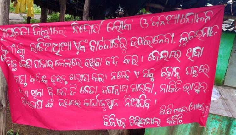 ରାୟଗଡା ଜିଲ୍ଲା ମୁନିଗୁଡା ଥାନା ଅନ୍ତର୍ଗତ ରାମନାକୁପୁଲି ଛକରେ ଲାଗିଛି ମାଓ ବ୍ୟାନର ଓ ପୋଷ୍ଟର