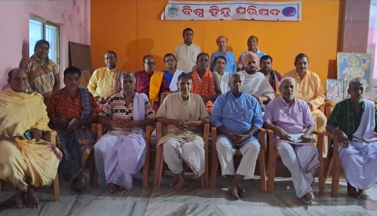 କଟକ: ଓଡିଶା ପୂର୍ବ ପ୍ରାନ୍ତ ବିଶ୍ବ ହିନ୍ଦୁ ପରିଷଦ ଧର୍ମ ପ୍ରସାର ବିଭାଗ ସଂଯୋଜନାରେ କଟକ ସହରର ସମସ୍ତ ମୁଖ୍ୟ ମନ୍ଦିର ମାନଙ୍କର ସମ୍ମାନୀୟ ପୂଜକ ,ପୂଜ୍ଯ ଆଚାର୍ଯ୍ୟ,ତଥା ପ୍ରତିଷ୍ଠିତ ବରେଣ୍ଯ ପଣ୍ତିତ ମାନଙ୍କର ସାମୁହିକ ଚିନ୍ତନ ବୈଠକ ସ୍ଥାନୀୟ କଲେଜ ଛକ ବିଶ୍ଵ ହିନ୍ଦୁ ପରିଷଦ କାର୍ଯ୍ୟାଳୟ ପରିସରର ଅହଲ୍ଯା ନିବାସରେ ଅନୁଷ୍ଠିତ ହୋଇଯାଇଅଛି।