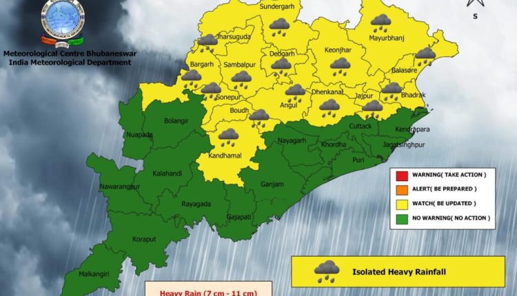 ରାଜ୍ୟର ବରଗଡ଼, ଝାରସୁଗୁଡା, ସୁନ୍ଦରଗଡ଼, ସମ୍ବଳପୁର, ଦେବଗଡ, ଅନୁଗୁଳ, ଢ଼େଙ୍କାନାଳ, କେନ୍ଦୁଝର, ମୟୂରଭଞ୍ଜ, ବାଲେଶ୍ୱର, ଭଦ୍ରକ, ଯାଜପୁର, ବୌଦ୍ଧ, କନ୍ଧମାଳ ଓ ସୋନପୁର ଜିଲ୍ଲାର ଗୋଟିଏ କିମ୍ବା ଦୁଇଟି ସ୍ଥାନରେ ପ୍ରବଳ ବର୍ଷା ହେବାର ସମ୍ଭାବନା ରହିଛି। ସେଥିପାଇଁ ଏହି ସବୁ ଜିଲ୍ଲାକୁ ୟେଲୋଓ୍ଵାର୍ଣ୍ଣିଂ ଜାରି କରିଛି ପାଣିପାଗ ବିଭାଗ।
