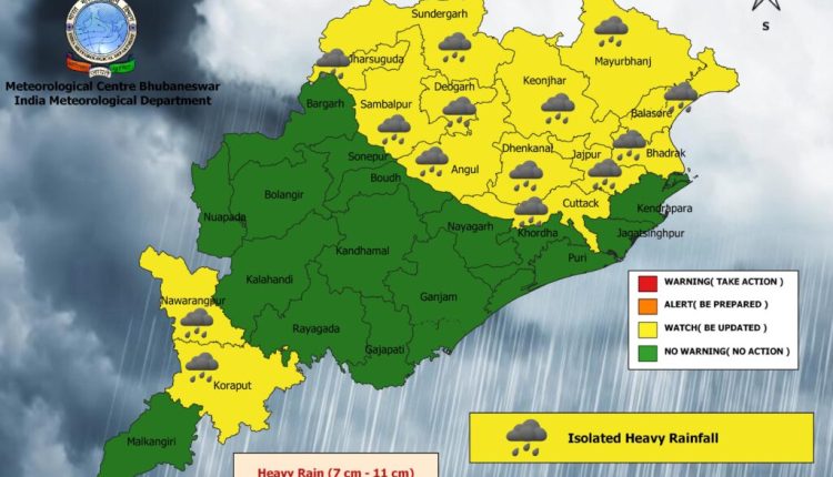 ଜୁଲାଇ ୨୬ ତାରିଖ, ମଙ୍ଗଳବାର ମଧ୍ୟାହ୍ନ ସୁଦ୍ଧା ରାଜ୍ୟର ସୁନ୍ଦରଗଡ଼, ଝାରସୁଗୁଡା, ସମ୍ବଲପୁର, ଦେବଗଡ, ଅନୁଗୁଳ, କେନ୍ଦୁଝର, ମୟୂରଭଞ୍ଜ, ଯାଜପୁର, ବାଲେଶ୍ୱର, ଭଦ୍ରକ, କଟକ, ଢ଼େଙ୍କାନାଳ, କୋରାପୁଟ ଓ ନବରଙ୍ଗପୁର ଜିଲ୍ଲାର ଗୋଟିଏ କିମ୍ବା ଦୁଇଟି ସ୍ଥାନରେ ବିଜୁଳି ଓ ଘଡ଼ଘଡ଼ି ସହ ପ୍ରବଳ ବର୍ଷା ହେବାର ସମ୍ଭାବନା ରହିଛି। ସେଥିପାଇଁ ଏହି ୧୪ଟି ଜିଲ୍ଲାକୁ ୟେଲୋଓ୍ଵାର୍ଣ୍ଣିଂ ଜାରି କରିଛି ପାଣିପାଗ ବିଭାଗ।