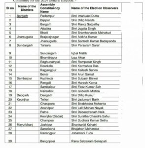 ଭୁବନେଶ୍ବର, ୧୭/୦୧/୨୦୨୪: ୨୦୨୪ ସାଧାରଣ ନିର୍ବାଚନ ପାଖେଇ ଆସୁଥିବା ବେଳେ ଓଡ଼ିଶାର ୧୪୭ଟି ବିଧାନସଭା ନିର୍ବାଚନ ମଣ୍ଡଳୀ ପାଇଁ ସଂଯୋଜକ ତାଲିକା ଜାରି କରିଛି କଂଗ୍ରେସ।