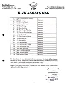 ସେହିପରି ଆବାହକ ଭାବେ ସାଂସଦ ଅମର ପଟ୍ଟନାୟକ ଓ ସହ ଆବାହକ ଭାବେ ସସ୍ମିତ ପାତ୍ରଙ୍କୁ ନିଯୁକ୍ତ କରାଯାଇଛି। ଅନ୍ୟପକ୍ଷରେ ୩ ଜଣ ପ୍ରବାସୀ ଓଡ଼ିଶା ବିଶେଷଜ୍ଞଙ୍କୁ କମିଟିରେ ସ୍ଥାନ ମିଳିଛି। ସମାଜର ପ୍ରତ୍ୟେକ ବର୍ଗକୁ ଗୁରୁତ୍ୱ ଦିଆଯିବ। ତେଣୁ ଏମାନେ ସମାଜର ବିଭିନ୍ନ ବର୍ଗଙ୍କ ମତାମତ ସଂଗ୍ରହ କରିବେ। ନବୀନ ଓଡ଼ଶା ସଶକ୍ତ ଓଡ଼ିଶା ପାଇଁ ଇସ୍ତାହାର ଆଣିବ ବିଜେଡି।