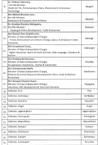 ରାଜ୍ୟର ବିଭିନ୍ନ ଜିଲ୍ଲାରେ ପତାକା ଉତ୍ତୋଳନ ପାଇଁ ବିଶିଷ୍ଟ ବ୍ୟକ୍ତିବିଶେଷଙ୍କ ତାଲିକା ନିମ୍ନରେ ଦିଆଯାଇଛି।