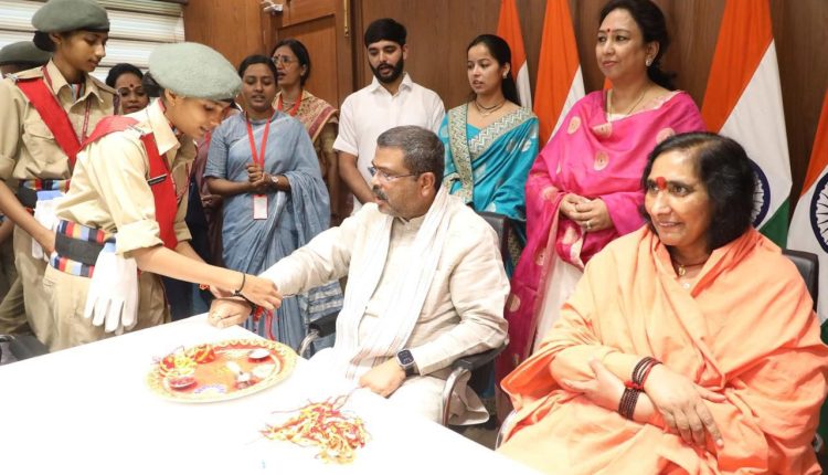 ‘ରାକ୍ଷୀ ପୂର୍ଣ୍ଣିମା’ରେ କେନ୍ଦ୍ର ଶିକ୍ଷା ମନ୍ତ୍ରୀଙ୍କୁ ରାକ୍ଷୀ ପିନ୍ଧାଇଲେ ସ୍କୁଲ ଛାତ୍ରୀ