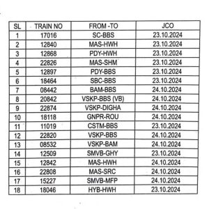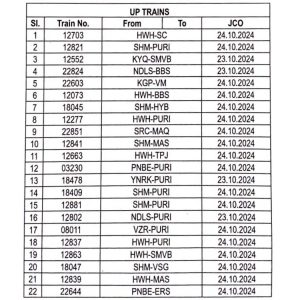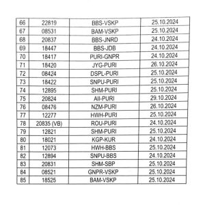 ବାତିଲ ହୋଇଥିବା ଅପ୍ ଟ୍ରେନ ଗୁଡିକ ହେଲା-