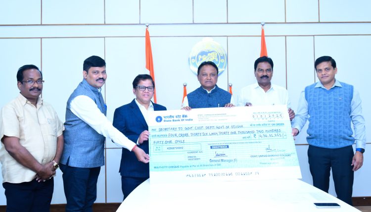 ରାଜ୍ୟ ପଣ୍ୟାଗାର ନିଗମ ପକ୍ଷରୁ ମୁଖ୍ୟମନ୍ତ୍ରୀଙ୍କୁ ୪.୩୬କୋଟି ଟଙ୍କାର ଲାଭାଂଶ ପ୍ରଦାନ
