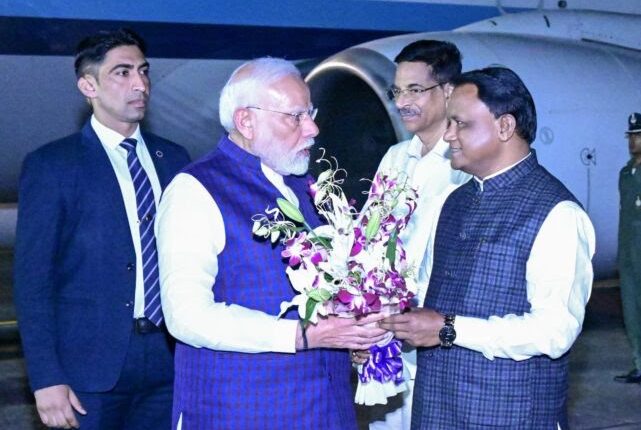 ଭୁବନେଶ୍ୱର, ୦୮/୦୧: ପ୍ରଧାନମନ୍ତ୍ରୀ ନରେନ୍ଦ୍ର ମୋଦି ଦୁଇ ଦିନିଆ ଓଡ଼ିଶା ଗସ୍ତରେ ଆସି ଆଜି ସନ୍ଧ୍ୟାରେ ଭୁବନେଶ୍ୱରରେ ପହଞ୍ଚିଛନ୍ତି। ବିଜୁ ପଟ୍ଟନାୟକ ଅନ୍ତର୍ଜାତୀୟ ବିମାନବନ୍ଦରରେ ଏକ ସ୍ବତନ୍ତ୍ର ବିମାନରେ ଅବତରଣ କରିବା ପରେ ରାଜ୍ୟପାଳ ହରି ବାବୁ କାମ୍ଭମପତି, ମୁଖ୍ୟମନ୍ତ୍ରୀ ମୋହନ ଚରଣ ମାଝୀ, ଉପମୁଖ୍ୟମନ୍ତ୍ରୀ କେଭି ସିଂହଦେଓ ଓ ପ୍ରଭାତୀ ପରିଡ଼ା, କେନ୍ଦ୍ର ମନ୍ତ୍ରୀ ଧର୍ମେନ୍ଦ୍ର ପ୍ରଧାନ ଏବଂ ବିଜେପି ରାଜ୍ୟ ସଭାପତି ମନମୋହନ ସାମଲ ପ୍ରମୁଖ ତାଙ୍କୁ ଭବ୍ୟ ସ୍ୱାଗତ କରିଥିଲେ।