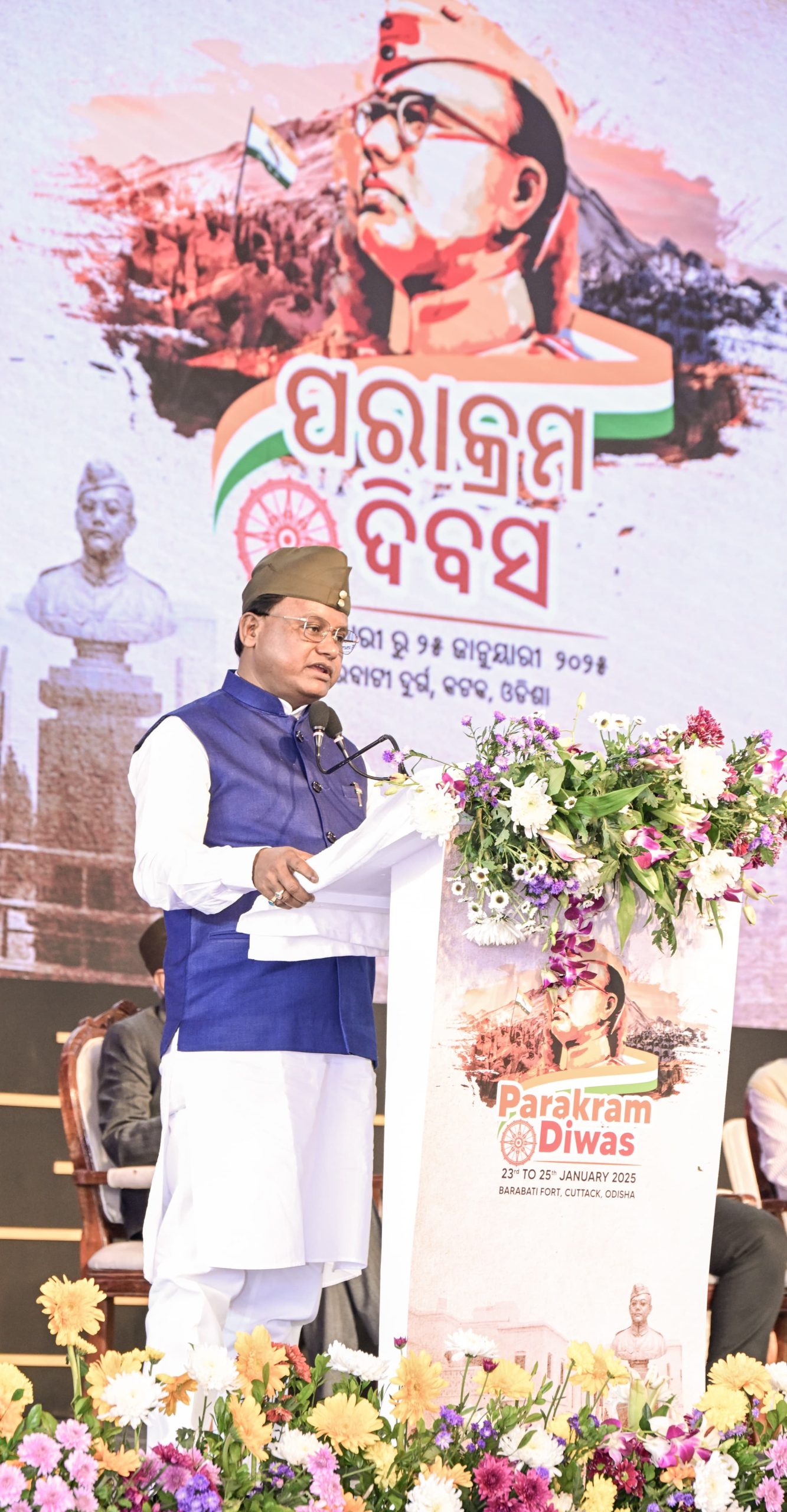 ବାରବାଟୀ ଦୁର୍ଗର ସତ୍ୟବ୍ରତ ଷ୍ଟାଡିୟମ ଠାରେ ନେତାଜୀ ସୁଭାଷ ଚନ୍ଦ୍ର ବୋଷଙ୍କ 128ତମ ଜନ୍ମ ବାର୍ଷିକୀ ଉପଲକ୍ଷେ ଆୟୋଜିତ ପରାକ୍ରମ ଦିବସ ପାଳନ ଅବସରରେ ମୁଖ୍ୟମନ୍ତ୍ରୀ ଆହୁରି ମଧ୍ୟ କହିଥିଲେ ଯେ, ବ୍ରିଟିଶ ଶାସନ ବିରୋଧରେ ନେତାଜୀଙ୍କ ବୀରତ୍ୱ ଓ ଯୁଦ୍ଧ କୌଶଳ ଦେଶର ସ୍ୱାଧୀନତା ପାଇଁ ଏକ ମୁଖ୍ୟ କାରଣ ଥିଲା । ଏହି ବୀର ଜନନାୟକଙ୍କୁ ସମ୍ମାନ ଅର୍ପଣ କରିବା ପାଇଁ ତାଙ୍କ ଜନ୍ମ ଦିବସକୁ ପରାକ୍ରମ ଦିବସ ଭାବେ ପାଳନ କରିବାକୁ ପ୍ରଧାନମନ୍ତ୍ରୀ ଶ୍ରୀଯୁକ୍ତ ନରେନ୍ଦ୍ର ମୋଦୀ 2021 ଜାନୁଆରୀ 19 ତାରିଖରୁ ଘୋଷଣା କରିଛନ୍ତି । ଓଡିଶାର ଏହି ବୀର ସନ୍ତାନଙ୍କ ଜନ୍ମ ସହରରେ ତାଙ୍କ ଜନ୍ମ ଦିବସକୁ ପାଳନ କରିବା ଆମ ପାଇଁ ବଡ ସୌଭାଗ୍ୟର ଅବସର ବୋଲି ମୁଖ୍ୟମନ୍ତ୍ରୀ କହିବା ସହିତ ଅନେକ ଐତିହାସିକ ଓ ସେ ସମୟର ବ୍ରିଟିଶ ଶାସକ ମାନେ ମଧ୍ୟ ସ୍ୱୀକାର କରିଛନ୍ତି ଯେ, ନେତାଜୀଙ୍କ ସଶସ୍ତ୍ର ସଂଗ୍ରାମ ହୋଇନଥିଲେ, ହୁଏତ ଆହୁରି କିଛି ବର୍ଷ ବ୍ରିଟିଶ ସରକାର ଭାରତରେ ଶାସନ କରିପାରିଥାନ୍ତେ । ନେତାଜୀଙ୍କ ବୀରତ୍ୱ ଓ ସଂଗ୍ରାମକୁ ସମ୍ମାନ ପ୍ରଦର୍ଶନ କରି ଆମ ପ୍ରଧାନମନ୍ତ୍ରୀ 2018 ଡିସେମ୍ବର 30 ତାରିଖରେ ଭାରତ ବର୍ଷର ରସ୍ ଦୀପକୁ ନେତାଜୀ ସୁଭାଷ ବୋଷ ଦୀପ ଭାବେ ନାମ କରଣ କରିଛନ୍ତି ବୋଲି ସେ କହିଥିଲେ ।