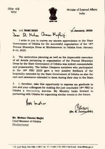 ଭୁବନେଶ୍ୱର, ୩୧/୦୧: ଓଡ଼ିଶାର ମୁଖ୍ୟମନ୍ତ୍ରୀ ଶ୍ରୀଯୁକ୍ତ ମୋହନ ଚରଣ ମାଝୀଙ୍କୁ ଭୂରି ପ୍ରଶଂସା କରିଛନ୍ତି ବୈଦେଶିକ ବ୍ୟାପର ମନ୍ତ୍ରୀ ଏସ ଜୟଶଙ୍କର। ଗତ ୮ରୁ ୧୦ ତାରିଖ ମଧ୍ୟରେ ଭୁବନେଶ୍ୱର ର ଜନତା ମଇଦାନରେ ପ୍ରବାସୀ ଭାରତୀୟ ଦିବସ ସମ୍ମିଳନୀ ସଫଳତାର ସହ ଆୟୋଜିତ ହୋଇଥିବାରୁ ମୁଖ୍ୟମନ୍ତ୍ରୀଙ୍କୁ ଚିଠି ଲେଖି ପ୍ରଶଂସା କରିଛନ୍ତି।