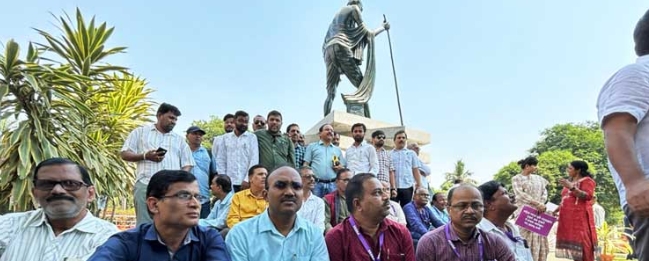 ଗାନ୍ଧୀ ପ୍ରତିମୂର୍ତ୍ତୀ ତଳେ ସାମ୍ବାଦିକଙ୍କ ପ୍ରତିବାଦ