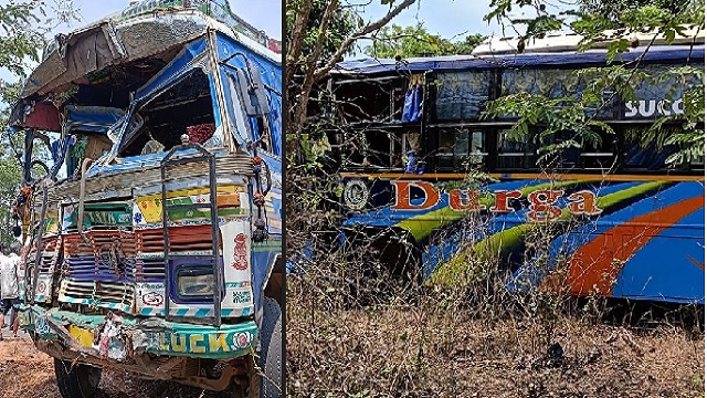 କଟକ, ୧୧/୦୪: କଟକରେ ଏକ ମର୍ମନ୍ତୁଦ ସଡ଼କ ଦୁର୍ଘଟଣା ଘଟିଛି। ଶୁକ୍ରବାର ଆଠଗଡ଼ ଥାନା ମୁଣ୍ଡଳି ରାସ୍ତାର ଛତାର ଛକ ନିକଟରେ ଏକ ଯାତ୍ରୀବାହୀ ବସ୍ ଓ ଟ୍ରକ ମଧ୍ୟରେ ଧକ୍କା ହୋଇଛି। ଏଥିରେ ୨୦ ଜଣ ଆହତ ହୋଇଥିବା ବେଳେ ୧୦ରୁ ଅଧିକ ଯାତ୍ରୀଙ୍କ ଅବସ୍ଥା ଗୁରୁତର ରହିଛି। ସ୍ଥାନୀୟ ଲୋକଙ୍କ ସହାୟତାରେ ଆହତ ଯାତ୍ରୀଙ୍କୁ ଉଦ୍ଧାର କରାଯାଇ ସ୍ଥାନୀୟ ଡ଼ାକ୍ତରଖାନାରେ ଭର୍ତ୍ତି କରାଯାଇଛି। ଖବର ପାଇ ଆଠଗଡ ପୋଲିସ ଘଟଣାସ୍ଥଳରେ ପହଞ୍ଚି ଏହି ଘଟଣାର ତଦନ୍ତ ଆରମ୍ଭ କରିଛି।