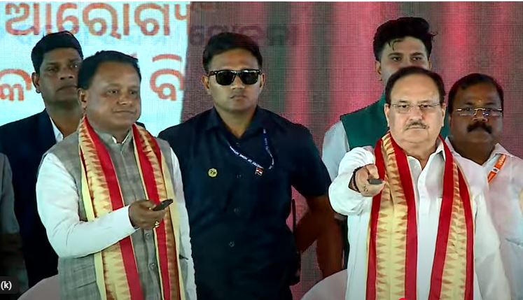 ଭୁବନେଶ୍ୱର, ୧୧/୦୪: ଓଡ଼ିଶାରେ ଶୁଭାରମ୍ଭ ହେଲା ‘ଆୟୁଷ୍ମାନ ଭାରତ ପ୍ରଧାନମନ୍ତ୍ରୀ ଜନ ଆରୋଗ୍ୟ ଯୋଜନା’, ‘ଗୋପବନ୍ଧୁ ଜନ ଆରୋଗ୍ୟ ଯୋଜନା’ ଏବଂ ‘ଆୟୁଷ୍ମାନ ବୟୋ ବନ୍ଦନା ଯୋଜନା। କଟକ ବାଲିଯାତ୍ରା ପଡ଼ିଆରେ ଆୟୋଜିତ ଏକ ସ୍ୱତନ୍ତ୍ର କାର୍ଯ୍ୟକ୍ରମରେ କେନ୍ଦ୍ର ସ୍ୱାସ୍ଥ୍ୟମନ୍ତ୍ରୀ ଜେପି ନଡ୍ଡା ଏହି ଯୋଜନାର ଶୁଭାରମ୍ଭ କରିଛନ୍ତି।