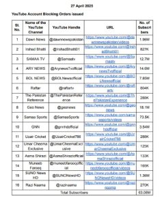 ଡନ୍ ନ୍ୟୁଜ୍, ସାମା ଟିଭି, ଏଆରୱାଇ ନ୍ୟୁଜ୍, ବୋଲ ନ୍ୟୁଜ୍, ରଫ୍ତାର, ଜିଓ ନ୍ୟୁଜ୍ ଏବଂ ସୁନୋ ନ୍ୟୁଜ୍ ଭଳି ପ୍ରମୁଖ ପାକିସ୍ତାନୀ ନ୍ୟୁଜ୍ ଚ୍ୟାନେଲଗୁଡିକୁ ବ୍ୟାନ କରାଯାଇଛି। ଏହି ୟୁଟ୍ୟୁବ ଚ୍ୟାନେଲ ଗୁଡ଼ିକ ଭାରତୀୟ ସେନା ଓ ଗୁଇନ୍ଦା ଏଜେନ୍ସି ବିରୋଧରେ ମଧ୍ୟ ଉତ୍ତେଜନା ମୂଳକ ଖବର ପ୍ରସାରଣ କରୁଥିଲେ। କେନ୍ଦ୍ର ଗୃହ ମନ୍ତ୍ରଣାଳୟର ସୁପାରିସ କ୍ରମେ ଏହି ନିଷ୍ପତ୍ତି ନିଆଯାଇଛି।