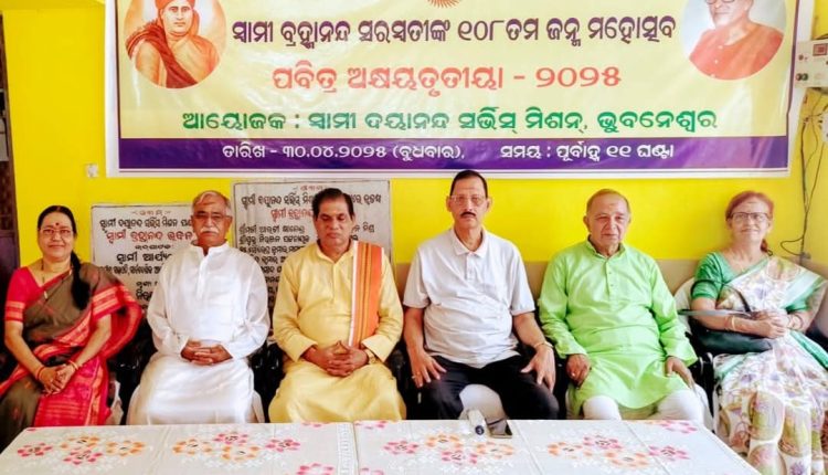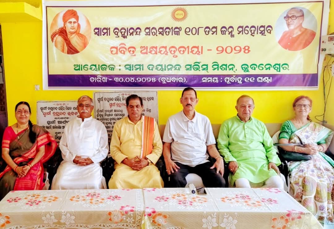 ଭୁବନେଶ୍ୱର, ୩୦/୦୪: ଓଡ଼ିଶାରେ ଗୁରୁକୂଳ ଓ ଆର୍ଯ୍ୟସମାଜ ଆନ୍ଦୋଳନର ଅଗ୍ରଦୂତ ତଥା ବୈଦିକ ଗୁରୁକୂଳ ଆଶ୍ରମ ବେଦବ୍ୟାସର ପ୍ରତିଷ୍ଠାତା ସ୍ୱାମୀ ବ୍ରହ୍ମାନନ୍ଦ ସରସ୍ୱତୀଙ୍କ ୧୦୮ତମ ଜୟନ୍ତୀ ଉତ୍ସବ, ଆର୍ଯ୍ୟସମାଜ ଓଡ଼ିଶା ଓ ସ୍ୱାମୀ ଦୟାନନ୍ଦ ସର୍ଭିସ ମିଶନ ପକ୍ଷରୁ ମିଳିତ ଭାବେ ଚନ୍ଦ୍ରଶେଖରପୁର ଶ୍ରୀ ଅରବିନ୍ଦନଗରସ୍ଥିତ ସ୍ୱାମୀ ବ୍ରହ୍ମାନନ୍ଦ ଭବନ ସଭାଗୃହରେ ଅନୁଷ୍ଠାନର ଅଧ୍ୟକ୍ଷ ଡଃ ଆର୍ଯ୍ୟକୁମାର ଜ୍ଞାନେନ୍ଦ୍ରଙ୍କ ପୌରହିତ୍ୟରେ ପାଳିତ ହୋଇଯାଇଛି ।