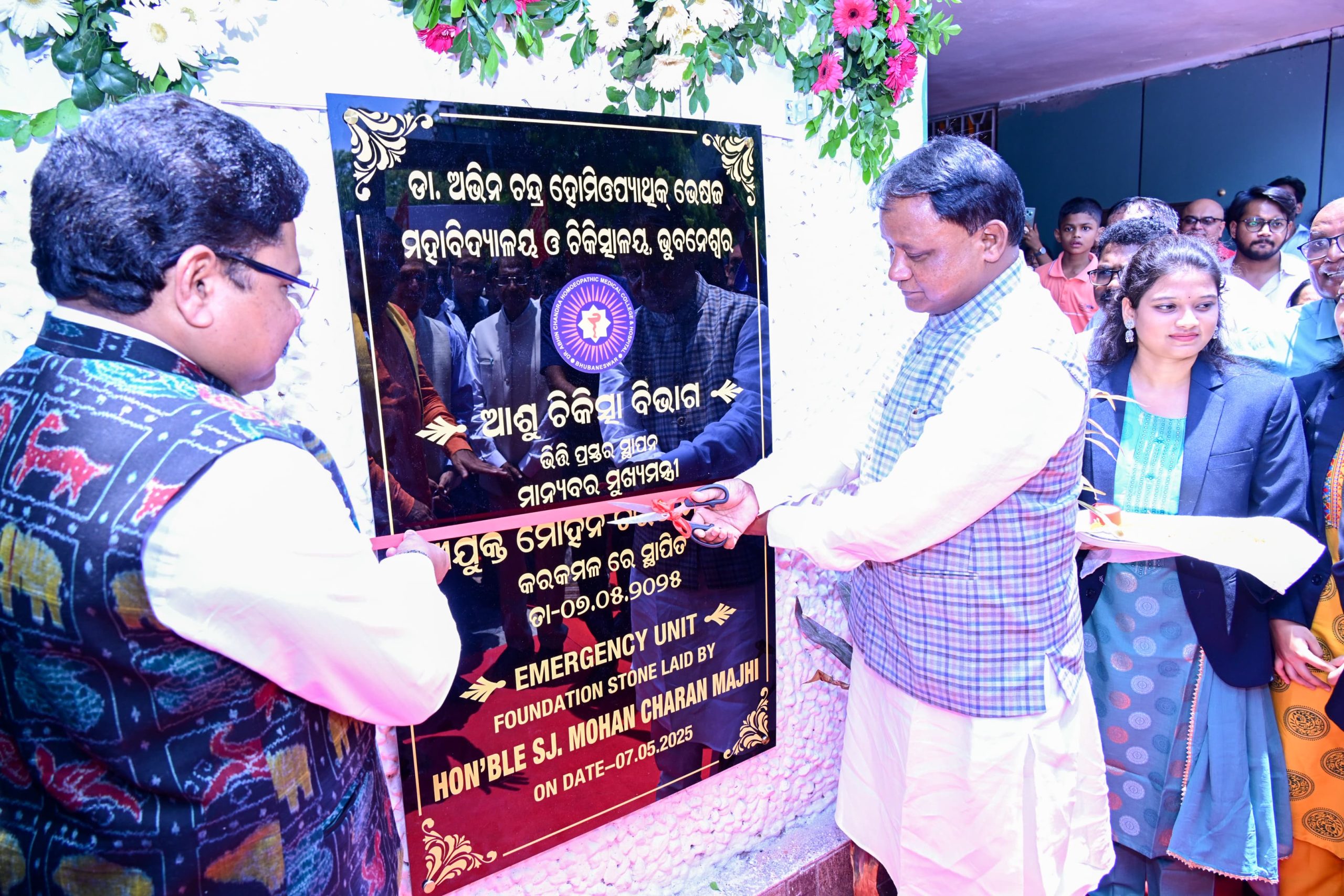 ଭୁବନେଶ୍ୱର, ୦୭/୦୫: ମୁଖ୍ୟମନ୍ତ୍ରୀ ଶ୍ରୀ ମୋହନ ଚରଣ ମାଝୀ ଆଜି ଭୁବନେଶ୍ୱର ସ୍ଥିତ ଡଃ ଅଭିନଚନ୍ଦ୍ର ହୋମିଓପାଥିକ୍ ମେଡିକାଲ କଲେଜ ଓ ହସ୍ପିଟାଲର ଛାତ୍ର ସଂସଦର ବାର୍ଷିକ ଉତ୍ସବରେ ମୁଖ୍ୟ ଅତିଥି ଭାବେ ଯୋଗଦାନ କରି ସେଠାରେ ଏକ ନୂତନ ଏମରଜେନ୍ସି ୟୁନିଟର ଶିଳାନ୍ୟାସ କରିବା ସହିତ କଲେଜ୍ରେ ଏକ ହୋମିଓପାଥି ଗବେଷଣା ଓ ବିଶ୍ଳେଷଣ ବିଭାଗ (Homoeopathic Research & Analysis Department) ଖୋଲାଯିବ ବୋଲି ଘୋଷଣା କରିଛନ୍ତି । ଏହି ଅବସରରେ ମୁଖ୍ୟମନ୍ତ୍ରୀ ଏକ ରକ୍ତଦାନ ଶିବିରର ଉଦ୍ଘାଟନ ମଧ୍ୟ କରିଛନ୍ତି।