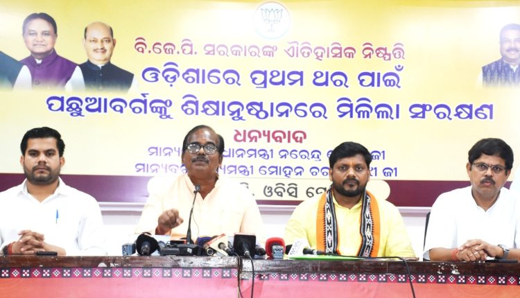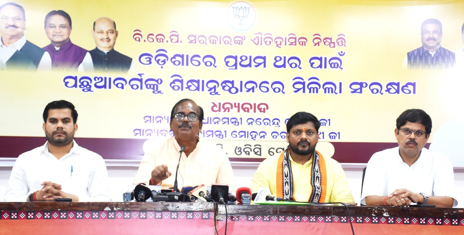 ସାମାଜିକ ନ୍ୟାୟ ଦେବାକୁ ବିଜେପି ସରକାର ପ୍ରତିବଦ୍ଧ । ନୂତନ ସଂରକ୍ଷଣ ବ୍ୟବସ୍ଥା ଦ୍ୱାରା ୫୪ ପ୍ରତିଶତ ପଛୁଆବର୍ଗ ଲୋକେ ଉପକୃତ ହେବେ । ପଛୁଆବର୍ଗଙ୍କୁ ସାମ୍ବିଧାନିକ ଅଧିକାର ଦେଇ ନ ଥିଲା ବିଜେଡି । ବିଜେଡିର ଯୋଜନାବଦ୍ଧଭାବେ ଚକ୍ରାନ୍ତ ଯୋଗୁ ପଂଚାୟତ ଓ ପୌରନିର୍ବାଚନରେ ପୂର୍ବରୁ ମିଳୁଥିବା ୨୭% ସଂରକ୍ଷଣରୁ ପଛୁଆବର୍ଗ ବଂଚିତ ହୋଇଥିଲେ ।