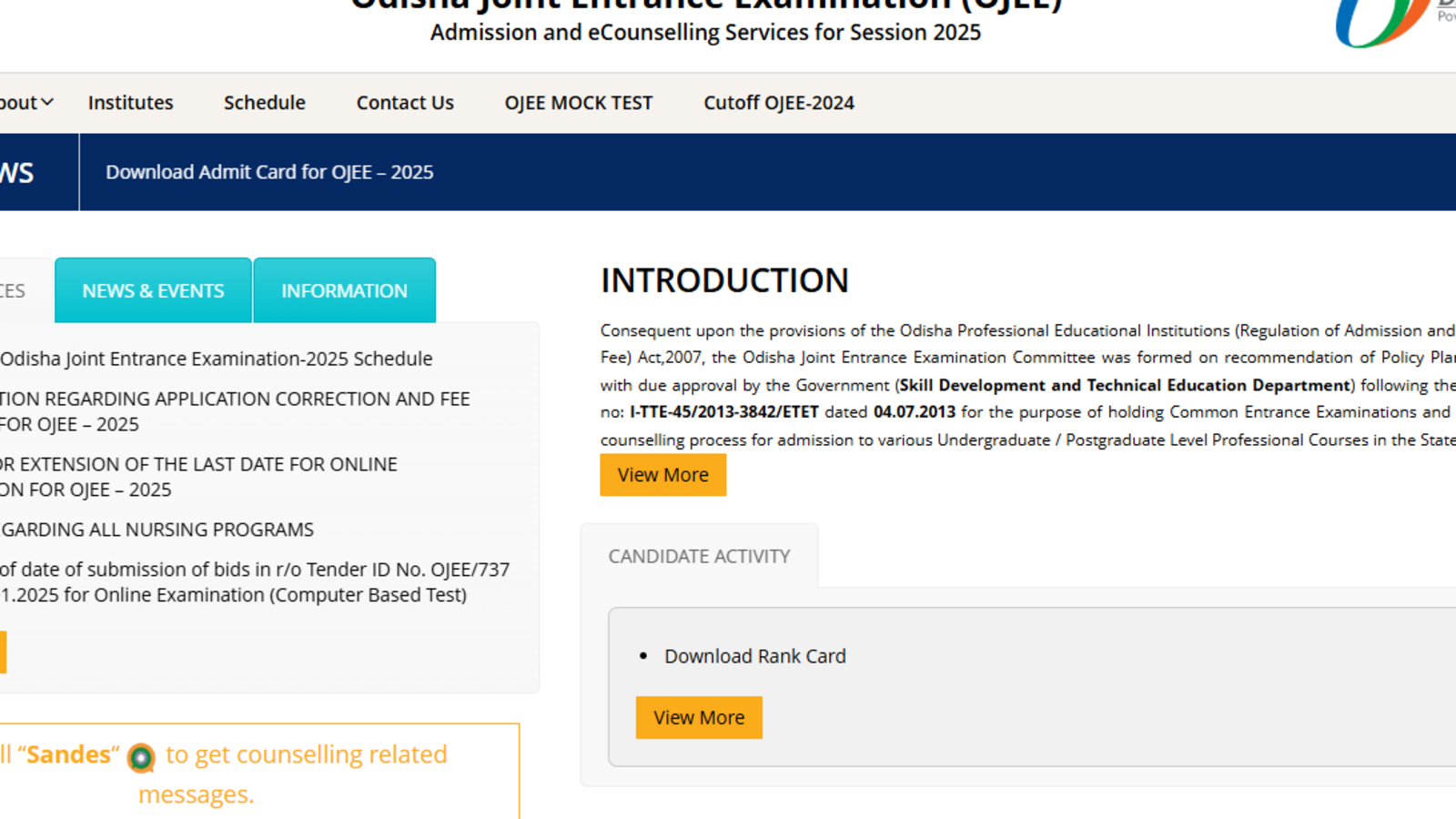 • ଓଜେଇଇର ଅଫିସିଆଲ୍ ୱେବସାଇଟ୍ ojee.nic.in କୁ ଯାଆନ୍ତୁ।