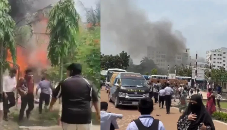ଢାକା, ୨୧/୦୭: ପୁଣି ଏକ ବଡ ଧରଣର ବିମାନ ଦୁର୍ଘଟଣା ହୋଇଛି। ଏକ ସ୍କୁଲ ଉପରେ ଖସି ପଡ଼ିଛି ବିମାନ। ବାଂଲାଦେଶର ଢାକାରେ ଏକ ସ୍କୁଲ କ୍ୟାମ୍ପସ ଉପରେ ଖସି ପଡ଼ିଛି ବାୟୁସେନାର ଏକ ତାଲିମ ପ୍ରଦାନକାରୀ ବିମାନ। ବାଂଲାଦେଶ ବାୟୁସେନାର ଟ୍ରେନିଂ ଚାଲିଥିବା ବେଳେ ଏହି ଦୁର୍ଘଟଣା ଘଟିଛି। ବିମାନଟି ଦୁର୍ଘଟଣାଗ୍ରସ୍ତ ହେବା ପରେ ହୁତୁହୁତୁ ହୋଇ ଜଳି ଉଠିଥିଲା। ଦୁର୍ଘଟଣା ଘଟିବା ସମୟରେ କ୍ୟାମ୍ପସରେ ଅନେକ ଛାତ୍ରଛାତ୍ରୀ ଥିଲେ। ଦୁର୍ଘଟଣାରେ ଜଣଙ୍କର ମୃତ୍ୟୁ ହୋଇଥିବା ବେଳେ ଏକାଧିକ ଆହତ ହୋଇଥିବା ସୂଚନା ମିଳିଛି।