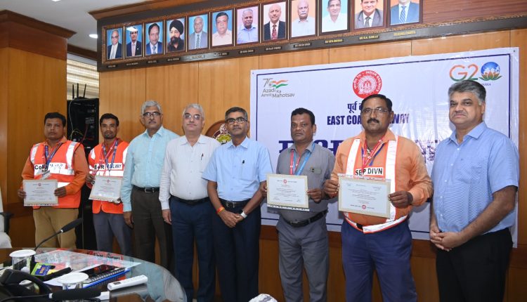 ଚାରି ରେଳ କର୍ମଚାରୀଙ୍କୁ ସମ୍ମାନିତ କଲେ ପୂର୍ବତଟ ରେଳପଥ ମହାପ୍ରବନ୍ଧକ