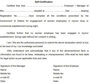 ରାତିରେ ମହିଳା କର୍ମଚାରୀଙ୍କୁ ନିୟୋଜିତ କରୁଥିବା ଯେକୌଣସି ନିଯୁକ୍ତିଦାତା ବିଭାଗର ନିର୍ଦ୍ଦିଷ୍ଟ ପୋର୍ଟାଲରେ ଇ-ଫର୍ମ ଦାଖଲ କରିବେ। ସେଥିରେ ମହିଳା କର୍ମଚାରୀଙ୍କୁ ସମସ୍ତ ସୁବିଧା ଯୋଗାଇ ଦିଆଯାଉଛି ବୋଲି ଉଲ୍ଲେଖ ରହିବ। କୌଣସି ମହିଳା କର୍ମଚାରୀଙ୍କୁ ରାତିରେ ଅନ୍ୟଥା କାମ କରିବାକୁ ଅନୁମତି ଦିଆଯିବ ନାହିଁ।