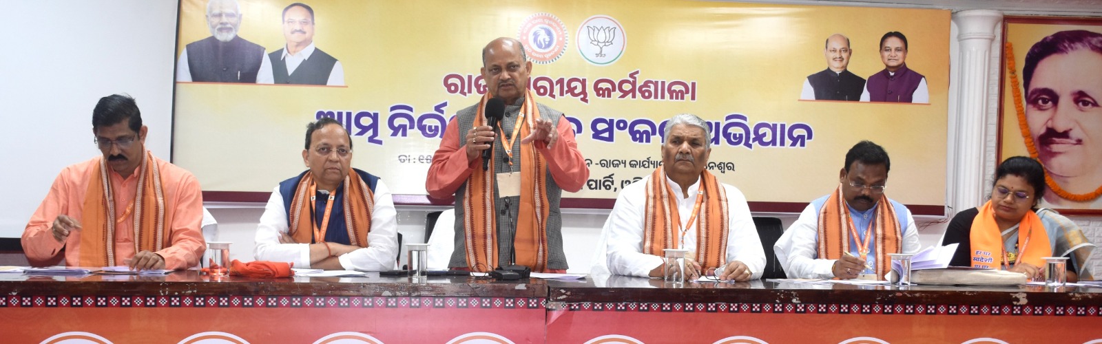 ଏହି କର୍ମଶାଳାରେ ଯୋଗଦେଇ ରାଜ୍ୟ ସଭାପତି ଶ୍ରୀ ମନମୋହନ ସାମଲ କହିଛନ୍ତି ଯେ, ଆତ୍ମନିର୍ଭର ଭାରତ କରିବା ପାଇଁ ମୋଦିଜୀ ଯେଉଁ ସ୍ୱପ୍ନ ଦେଖିଥିଲେ ତାହା ଆନ୍ଦୋଳନରେ ପରିଣତ ହୋଇଛି । ଆତ୍ମନିର୍ଭର ଭାରତ ହେଉଛି ଆତ୍ମବିଶ୍ୱାସର ଭାରତ । ଏହି ବିଶ୍ୱାସ ରଖି ଓଡ଼ିଶାରେ ଛୋଟରୁ ବଡ଼ ଉଦ୍ୟୋଗ ସୃଷ୍ଟି କରିବା ପାଇଁ ଆମ ସମସ୍ତଙ୍କୁ ପ୍ରୟାସ କରିବାକୁ ପଡ଼ିବ । ଓଡ଼ିଶା ହେଉଛି ସମ୍ଭାବନାର ରାଜ୍ୟ । ଏଠାରେ କୃଷିଠାରୁ ଆରମ୍ଭ କରି ଖଣି, ନଦୀ ପର୍ଯ୍ୟନ୍ତ ସବୁ ଭରପୁର ରହିଛି । ଶିଳ୍ପଠାରୁ ପର୍ଯ୍ୟଟନ କ୍ଷେତ୍ର ପର୍ଯ୍ୟନ୍ତ ବିକାଶ ପାଇଁ ବହୁଳ ସମ୍ଭାବନା ରହିଛି । ଓଡ଼ିଶାର ଲୋକେ ଦାଦନ ଖଟିବାକୁ ଆଉ ବାହାରକୁ ନ ଯାଇ ରାଜ୍ୟରେ କିପରି ଆତ୍ମନିର୍ଭରଶୀଳ ହୋଇପାରିବେ ସେନେଇ ଆମ ସମସ୍ତଙ୍କୁ ଉଦ୍ୟମ କରିବାକୁ ପଡ଼ିବ । ଏନେଇ ୩ ମାସ ପର୍ଯ୍ୟନ୍ତ କାର୍ଯ୍ୟକର୍ତାକୁ କଠିନ ପରିଶ୍ରମ କରି ଓଡ଼ିଶାର ସବୁ ଘରେ ଏହି ବାର୍ତା ପଂହଚାଇବାକୁ ଶ୍ରୀ ସାମଲ ପରାମର୍ଶ ଦେଇଥିଲେ । କାର୍ଯ୍ୟକ୍ରମକୁ ସଫଳ କରିବା ପାଇଁ ଏକ କମଟି ଗଠନ କରାଯାଇଥିଲା ।