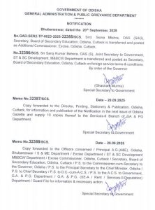 ସାଧାରଣ ପ୍ରଶାସନ ଏବଂ ସାଧାରଣ ଅଭିଯୋଗ ବିଭାଗ ଦ୍ୱାରା ଜାରି ବିଜ୍ଞପ୍ତି ଅନୁଯାୟୀ, ST/SC ବିଭାଗ ଯୁଗ୍ମ ସଚିବ ଥିବା ସରୋଜ ବେହେରାଙ୍କୁ ମାଧ୍ୟମିକ ଶିକ୍ଷା ବୋର୍ଡ ସମ୍ପାଦକ ଭାବେ ଦାୟିତ୍ୱ ମିଳିଛି।