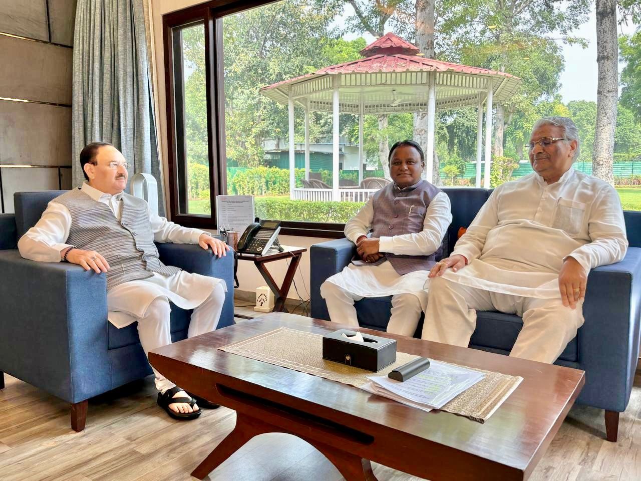 ନୂଆଦିଲ୍ଲୀ, ୪/୧୦: ଦିଲ୍ଲୀରେ ବିଜେପି ରାଷ୍ଟ୍ରୀୟ ଅଧ୍ୟକ୍ଷ ଜେ.ପି ନଡ୍ଡାଙ୍କୁ ଭେଟିଲେ ମୁଖ୍ୟମନ୍ତ୍ରୀ ମୋହନ ମାଝୀ। ମନ୍ତ୍ରିମଣ୍ଡଳ ସଂପ୍ରସାରଣ ଚର୍ଚ୍ଚା ଭିତରେ ନଡ୍ଡାଙ୍କୁ ଭେଟିଛନ୍ତି ମୁଖ୍ୟମନ୍ତ୍ରୀ। ଯାହା ଏହି ଚର୍ଚ୍ଚାକୁ ଆହୁରି ଖୋରାକ ଯୋଗାଇଛି। ଉଭୟଙ୍କ ମଧ୍ୟରେ ବିଭିନ୍ନ ସାଂଗଠନିକ ବିଷୟ ଉପରେ ଆଲୋଚନା ହୋଇଛି। ରାଜନୈତିକ ସ୍ଥିତି ଓ ଭବିଷ୍ୟତର କାର୍ଯ୍ୟପନ୍ଥା ଉପରେ ବିସ୍ତୃତ ଆଲୋଚନା ହୋଇଛି।