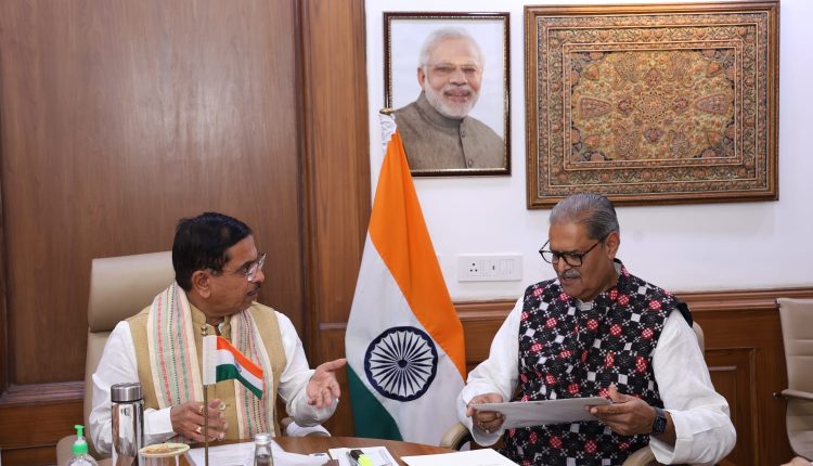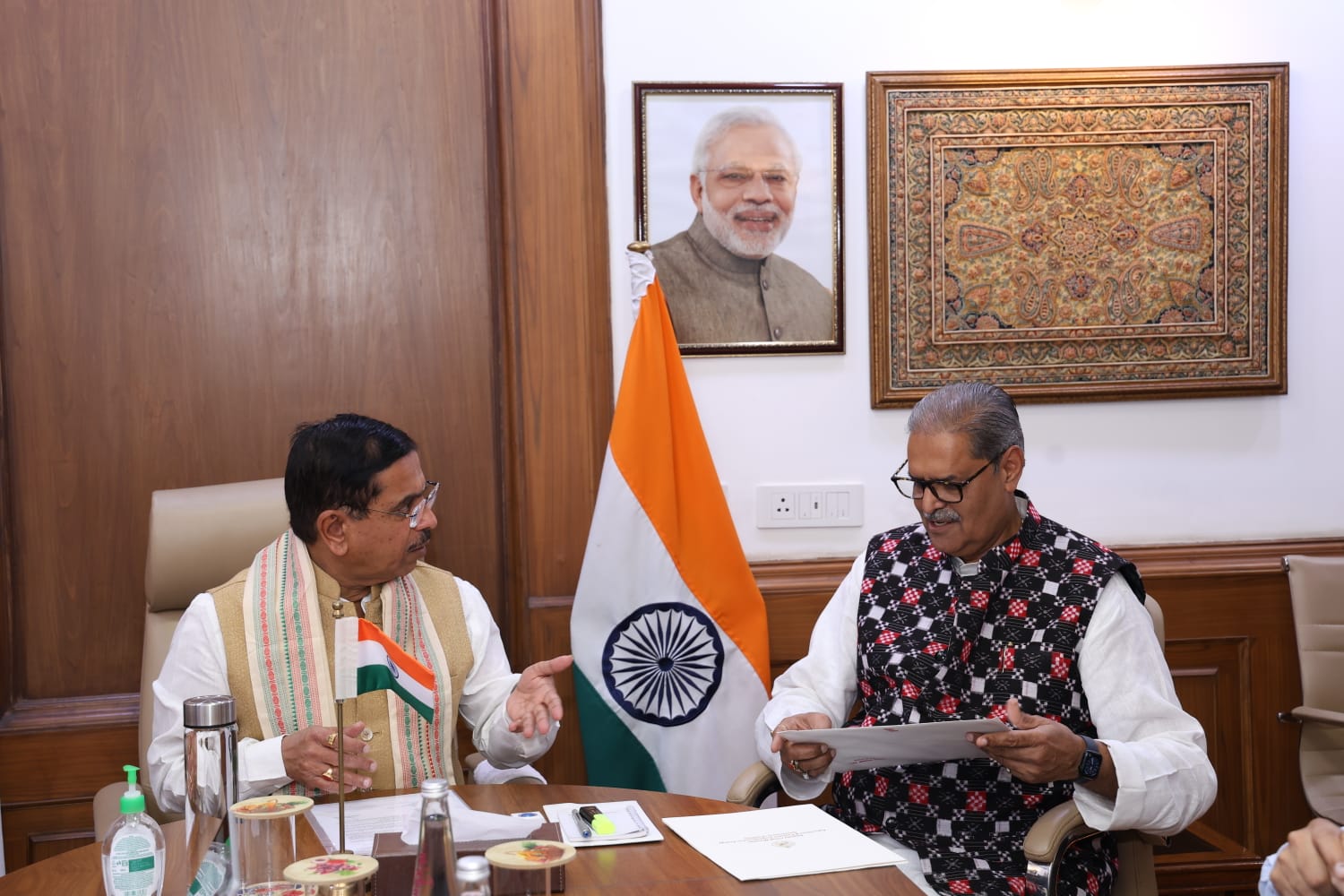 କେନ୍ଦ୍ର ମନ୍ତ୍ରୀ ଶ୍ରୀ ପ୍ରହଲ୍ଲାଦ ଜୋଶୀଙ୍କୁ ସୌଜନ୍ୟମୂଳକ ସାକ୍ଷାତ କଲେ ଉପମୁଖ୍ୟମନ୍ତ୍ରୀ ଶ୍ରୀ ସିଂହଦେଓ