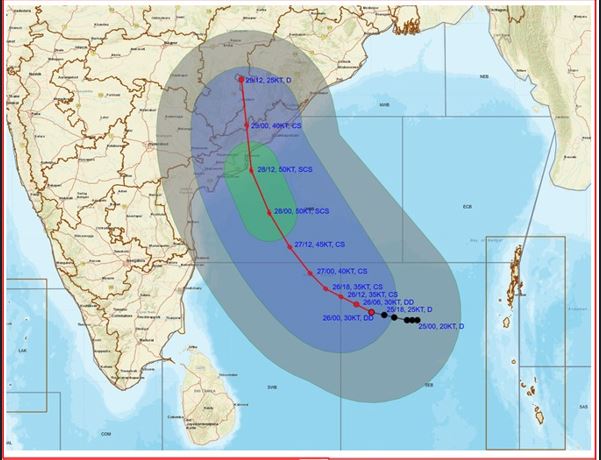 ସେହିପରି ଗତ ୬ ଘଣ୍ଟାରେ ଘଣ୍ଟା ପ୍ରତି ୧୦ କି.ମି. ବେଗରେ ଗତି କରୁଛି। ଏବେ ଗୋପାଳପୁର ଠାରୁ ୯୫୦ କି.ମି. ଦୂରରେ କେନ୍ଦ୍ରୀଭୂତ ହୋଇଛି। ଆନ୍ଧ୍ରର କାକିନାଡ଼ାଠାରୁ ୮୪୦ କି.ମି. ଦୂରରେ କେନ୍ଦ୍ରୀଭୂତ ହୋଇଛି।