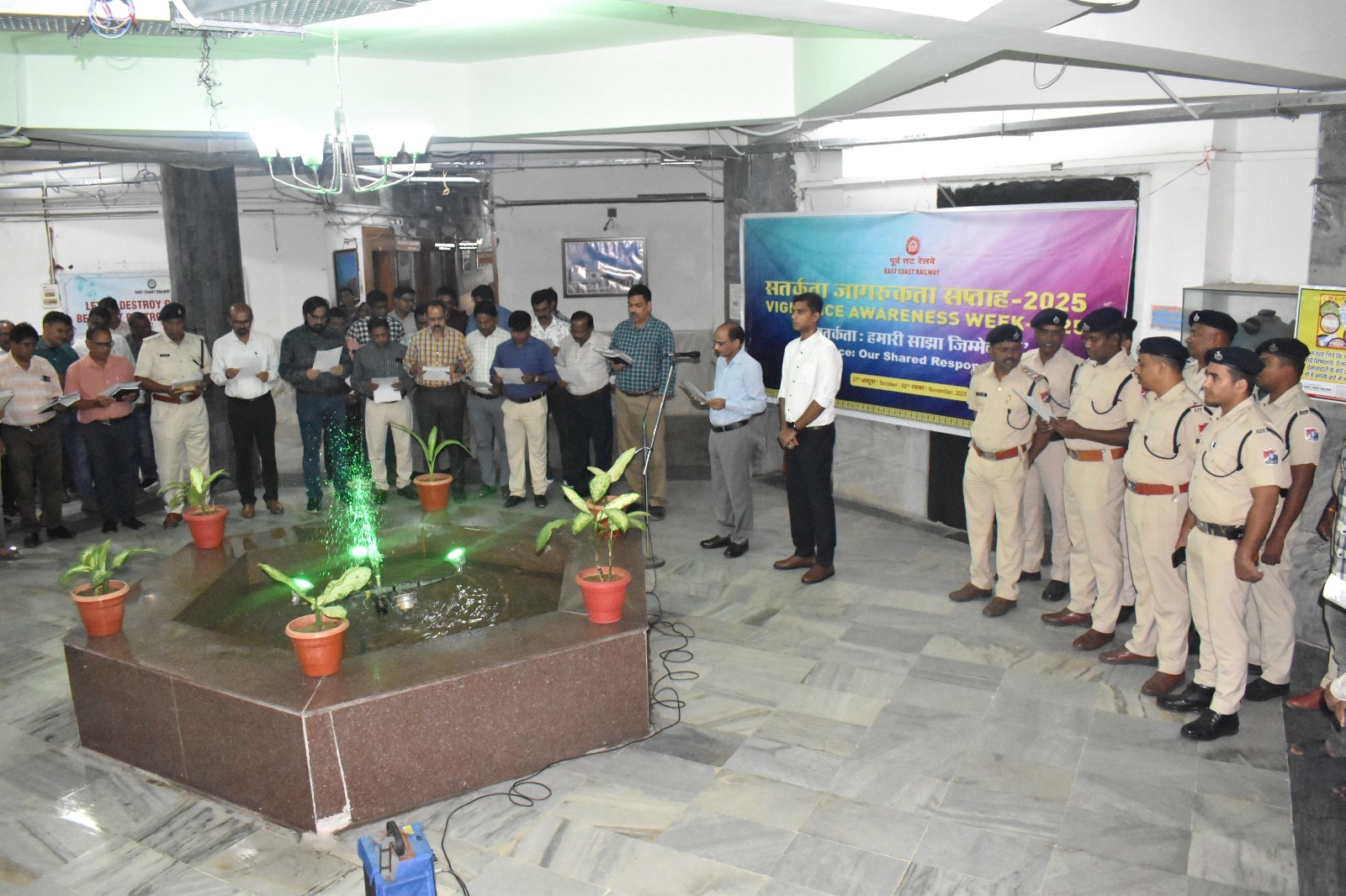 ସମ୍ବଲପୁର, ୨୭/୧୦: ପୂର୍ବତଟ ରେଳପଥ, ସମ୍ବଲପୁରର ମଣ୍ଡଳ ରେଳ ପ୍ରବନ୍ଧକ ଶ୍ରୀ ସୁବାଷ ସି ଚୌଧୁରୀ ୨୭ ଅକ୍ଟୋବର-୨୦୨୫ରେ ଡିଆରଏମ ଅଫିସ କମ୍ପ୍ଲେକ୍ସର ପ୍ରଗତି ଧାରାଠାରେ ସମ୍ବଲପୁର ମଣ୍ଡଳର ଅଧିକାରୀ ଏବଂ କର୍ମଚାରୀମାନଙ୍କୁ ସତର୍କତା ସଚେତନତା ସପ୍ତାହ-୨୦୨୫ ପାଳନ ଅବସରରେ ସମସ୍ତ କ୍ଷେତ୍ରରେ ଅଖଣ୍ଡତା ଏବଂ ସ୍ୱଚ୍ଛତା ଆଣିବା ପାଇଁ “ସତର୍କ ସତ୍ୟନିଷ୍ଠା ଶପଥ” ଉପରେ ଶପଥ ପାଠ କରାଇଥିଲେ। ୨୭ ଅକ୍ଟୋବର-୨୦୨୫ ରୁ ୨ ନଭେମ୍ବର-୨୦୨୫ ପର୍ଯ୍ୟନ୍ତ ଏହି ସତର୍କତା ସଚେତନତା ସପ୍ତାହ ପାଳନ କରାଯାଉଛି। ଅତିରିକ୍ତ ମଣ୍ଡଳ ରେଳ ପ୍ରବନ୍ଧକ ଶ୍ରୀ ମନଜିତ ସିଂହ ସନସନୱାଲ, ସମସ୍ତ ଅଧିକାରୀ ଏବଂ କର୍ମଚାରୀ ଉପରୋକ୍ତ ଶପଥରେ ଅଂଶଗ୍ରହଣ କରିଥିଲେ।