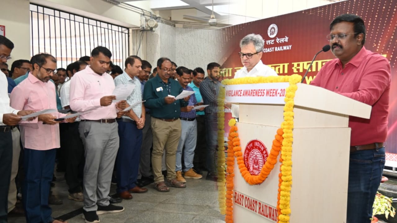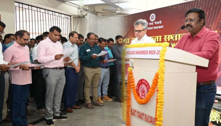 ସତର୍କତା (ଭିଜିଲାନ୍ସ) ସଚେତନତା ସପ୍ତାହ ପାଳନର ପ୍ରଥମ ଦିବସରେ ପୂର୍ବତଟ ରେଳପଥ କର୍ମଚାରୀମାନେ ଅଖଣ୍ଡତା ଓ ସ୍ୱଚ୍ଛତା ପାଇଁ ଶପଥ ନେଲେ