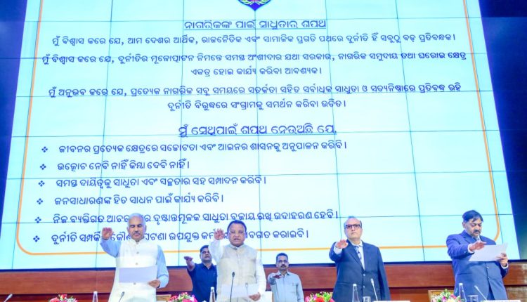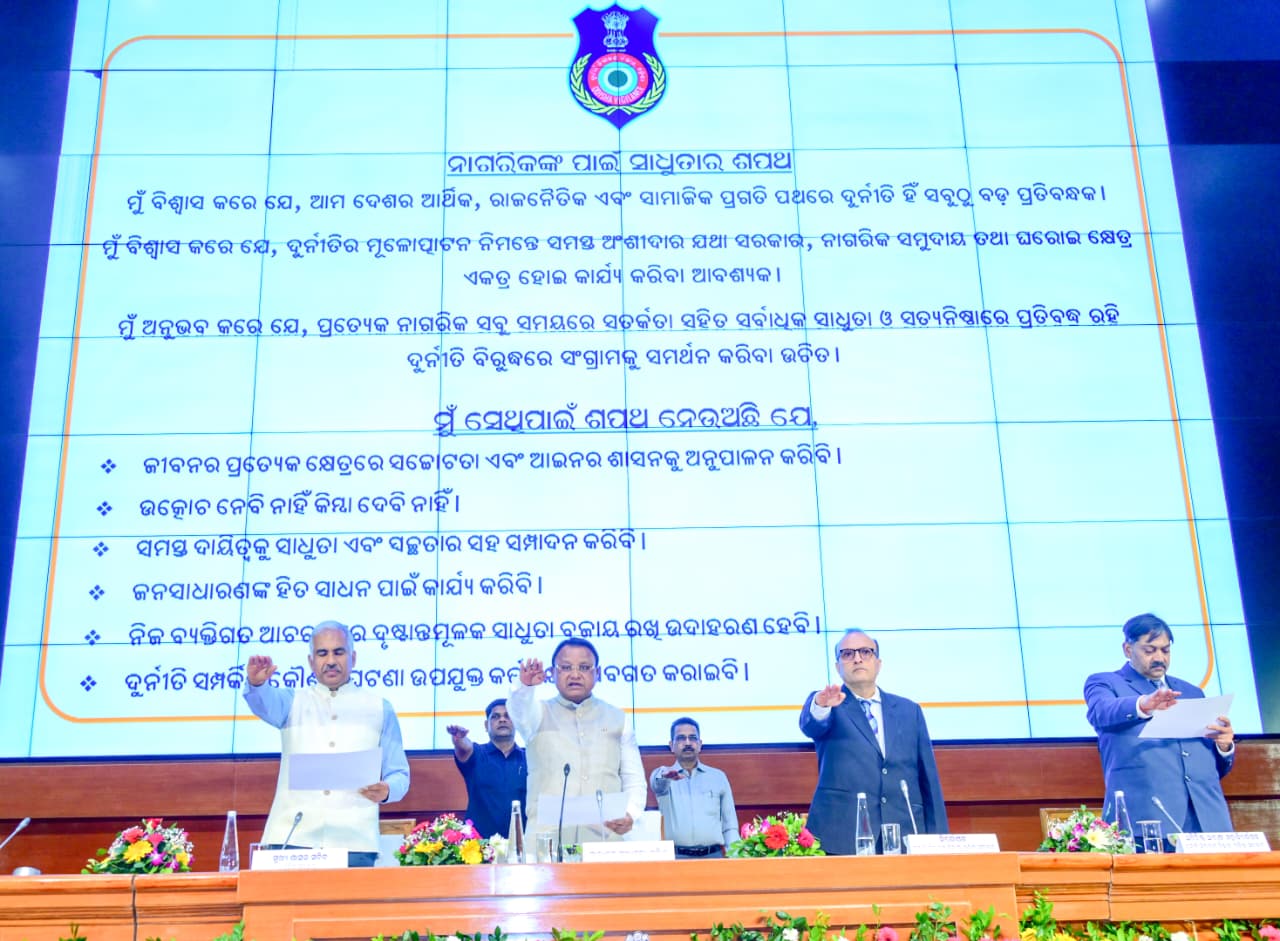 ରାଜ୍ୟସ୍ତରୀୟ ଦୁର୍ନୀତି ନିବାରଣ ସଚେତନତା ସପ୍ତାହ ୨୦୨୫: ସଚ୍ଚୋଟତା ଓ ସାଧୁତାର ଶପଥ ପାଠ କରାଇଲେ ମୁଖ୍ୟମନ୍ତ୍ରୀ