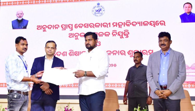 ବିଦେଶ ଶିକ୍ଷା ବୃତ୍ତି ଯୋଜନାର ଶୁଭାରମ୍ଭ ସହିତ ଆଜି ଉଚ୍ଚଶିକ୍ଷା ବିଭାଗ ପକ୍ଷରୁ ଅନୁଦାନ ପ୍ରାପ୍ତ ବେସରକାରୀ ମହାବିଦ୍ୟାଳୟରେ ୩୪ଜଣଙ୍କୁ ଗ୍ରୁପ ସି ଓ ଗ୍ରୁପ ଡ଼ି ବର୍ଗରେ ଅନୁକମ୍ପାମୂଳକ ନିଯୁକ୍ତି ପତ୍ର ପ୍ରଦାନ କରାଯାଇଛି। ସମସ୍ତ ନବ ନିଯୁକ୍ତମାନେ ଉଚ୍ଚଶିକ୍ଷା ମନ୍ତ୍ରୀଙ୍କ ଠାରୁ ନିଜର ନିଯୁକ୍ତି ପତ୍ର ଗ୍ରହଣ କରିବା ସହ ଅନୁକମ୍ପାମୂଳକ ନିଯୁକ୍ତିପାଇଁ ସରକାରଙ୍କୁ ଧନ୍ୟବାଦ ଜ୍ଞାପନ କରିଛନ୍ତି।