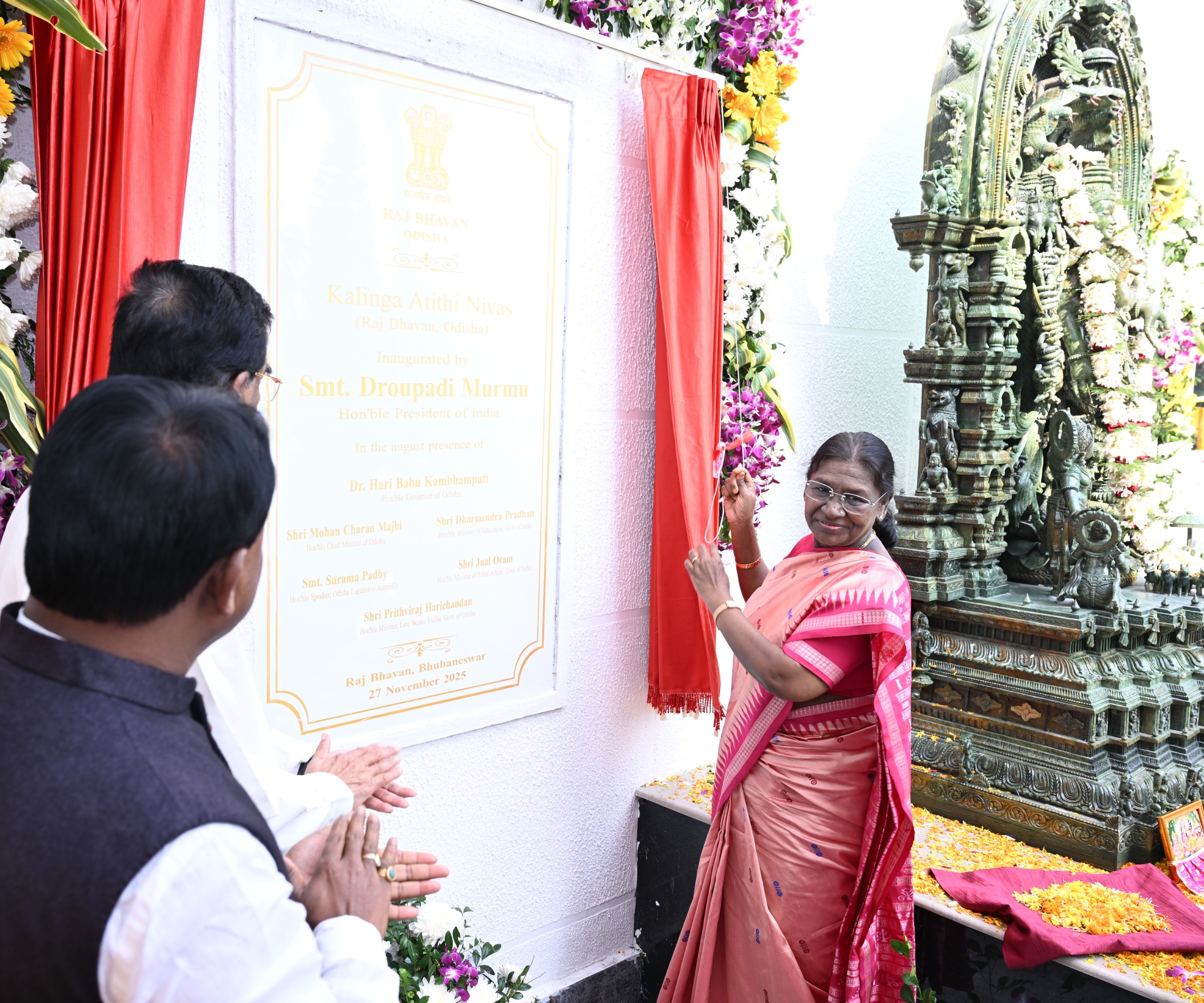 ରାଜଭବନରେ ନବନିର୍ମିତ କଳିଙ୍ଗ ଅତିଥି ନିବାସର ଉଦଘାଟନ କଲେ ଭାରତର ରାଷ୍ଟ୍ରପତି