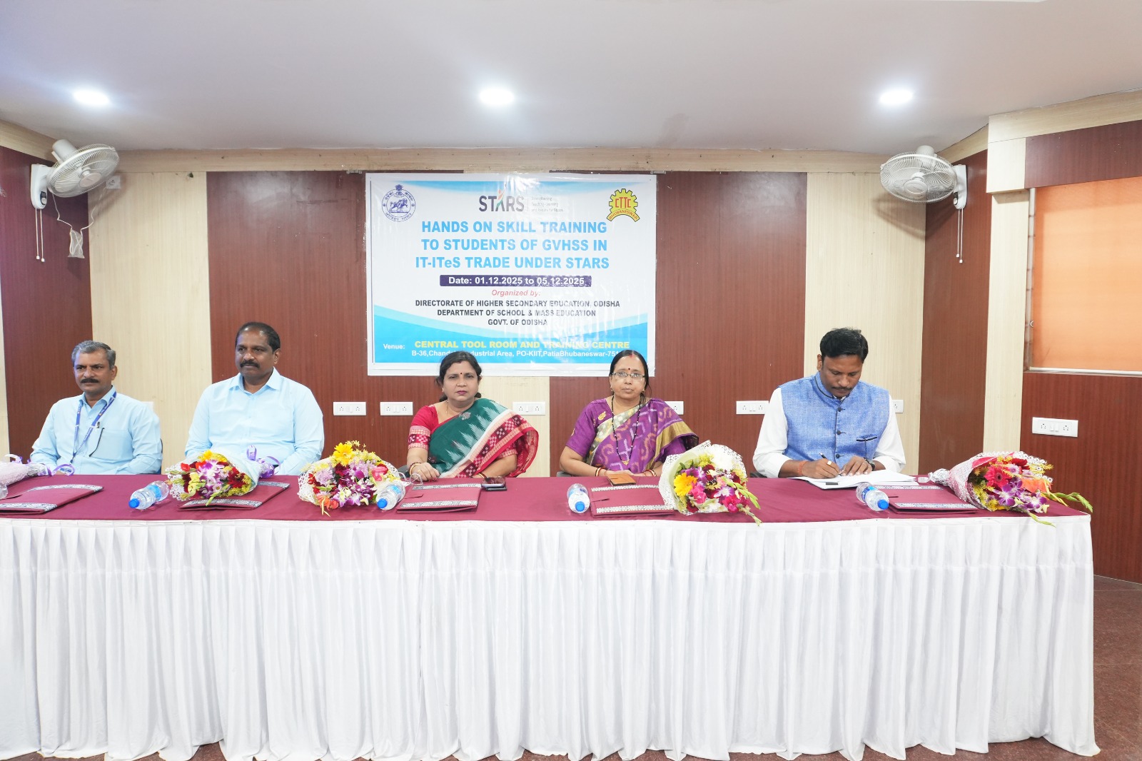 ସିଟିଟିସିରେ ଉଦଘାଟନୀ କାର୍ଯ୍ୟକ୍ରମରେ ଉଚ୍ଚ ମାଧ୍ୟମିକ ଶିକ୍ଷା ନିର୍ଦ୍ଦେଶାଳୟର ନିର୍ଦ୍ଦେଶକ ଶ୍ରୀମତୀ ନିୟତୀ ପଟ୍ଟନାୟକ, ଯୁଗ୍ମ ନିର୍ଦ୍ଦେଶକ ଶ୍ରୀମତୀ ବିନିତା ସେନାପତି, ଉପନିର୍ଦ୍ଦେଶକ ଶ୍ରୀ ଜିତେନ୍ଦ୍ର ନାୟକ, ସିଟିଟିସି ଜେନେରାଲ୍ ମ୍ୟାନେଜର୍ ଏଲ୍. ରାଜଶେଖର, ସିନିୟର ମ୍ୟାନେଜର୍ (ଟ୍ରେନିଂ) କେ.ଏମ୍ ରାଜନ୍ ପ୍ରମୁଖ ଉପସ୍ଥିତ ଥିବା ବେଳେ ବିଶ୍ବ ଦକ୍ଷତା କେନ୍ଦ୍ରଠାରେ ଡକ୍ଟର ଉମାକାନ୍ତ ସେଠୀ, OIC SAMS, DHSE, ବିଶ୍ବ ଦକ୍ଷତା କେନ୍ଦ୍ରର ପ୍ରିନ୍ସିପାଲ୍ ଶ୍ରୀ ଟି. ଥମ୍ବୀ ରାଜା ପ୍ରମୁଖ ଉପସ୍ଥିତ ଥିଲେ ।