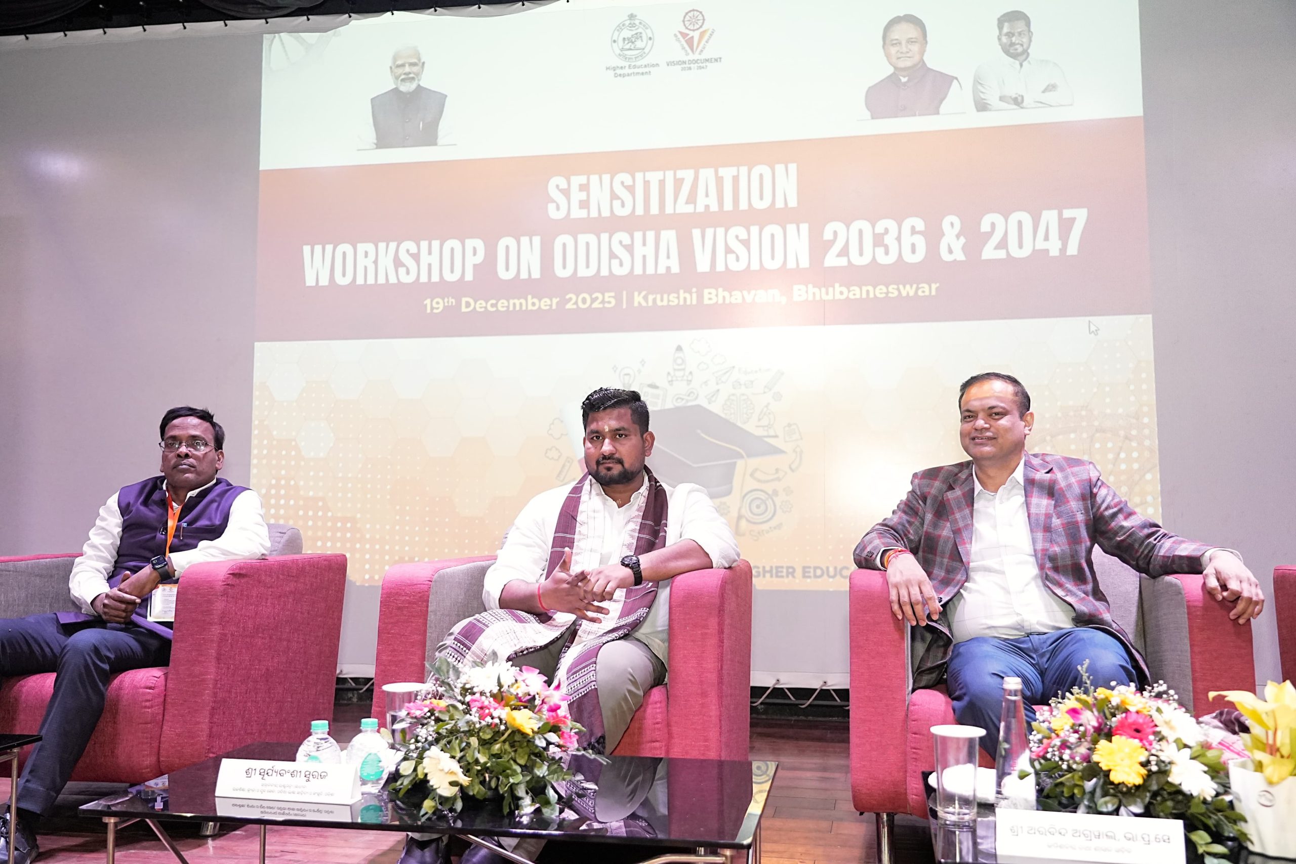 ଭୁବନେଶ୍ୱର, ୧୯/୧୨: ଓଡ଼ିଶା ଭିଜନ ଡକ୍ୟୁମେଣ୍ଟ ୨୦୩୬ ଓ ୨୦୪୭ (ବିକଶିତ ଭାରତ ପାଇଁ ବିକଶିତ ଓଡ଼ିଶା) କୁ ନେଇ ଉଚ୍ଚଶିକ୍ଷା ବିଭାଗ ପକ୍ଷରୁ ବିଶ୍ୱବିଦ୍ୟାଳୟର କୁଳପତି, ମହାବିଦ୍ୟାଳୟର ଅଧ୍ୟକ୍ଷ ଓ ଆଞ୍ଚଳିକ ଶିକ୍ଷା ନିର୍ଦ୍ଦେଶକମାନଙ୍କ ପାଇଁ ଆଜି ଏକ କର୍ମଶାଳାର ଆୟୋଜନ କରାଯାଇଥିଲା।