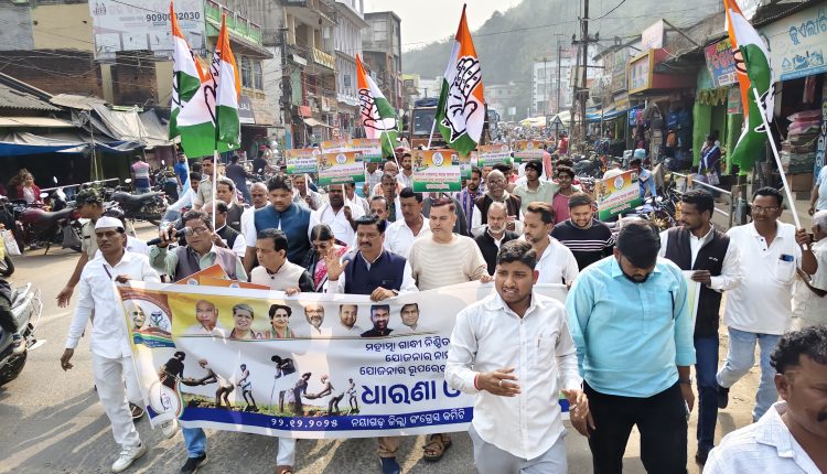 ମନରେଗା ଯୋଜନାରୁ ମହାତ୍ମା ଗାନ୍ଧୀଙ୍କ ନାମ ଏବଂ ନିୟମ ପରିବର୍ତ୍ତନ କରିଥିବା ବିଜେପି ସରକାର ବିରୁଦ୍ଧରେ କଂଗ୍ରେସର ବିକ୍ଷୋଭ