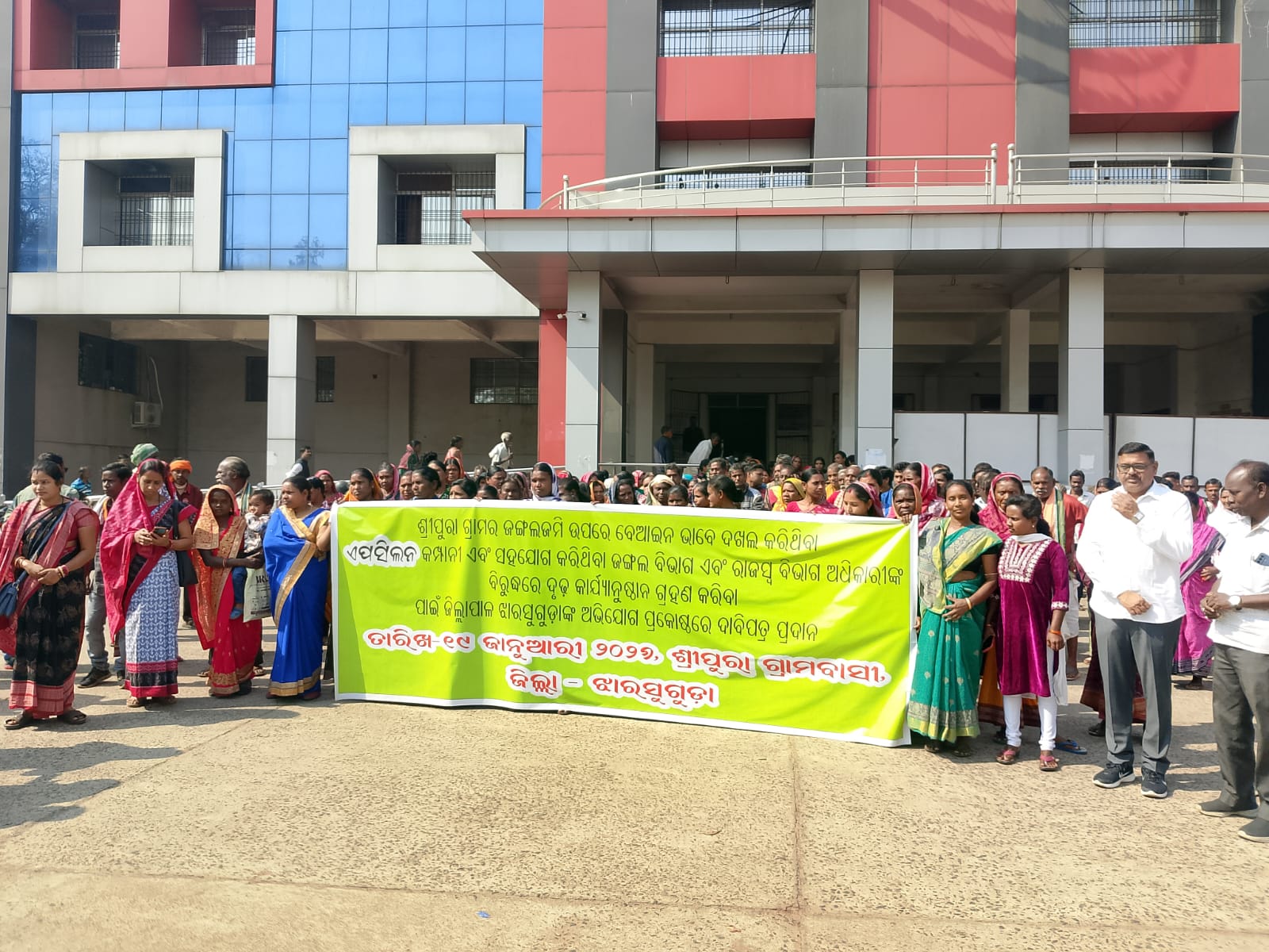 ଜିଲ୍ଲାପାଳଙ୍କ କାର୍ଯ୍ୟାଳୟ ସମ୍ମୁଖରେ ଶ୍ରୀପୁରା ଗ୍ରାମବାସିଙ୍କ ଆନ୍ଦୋଳନ
