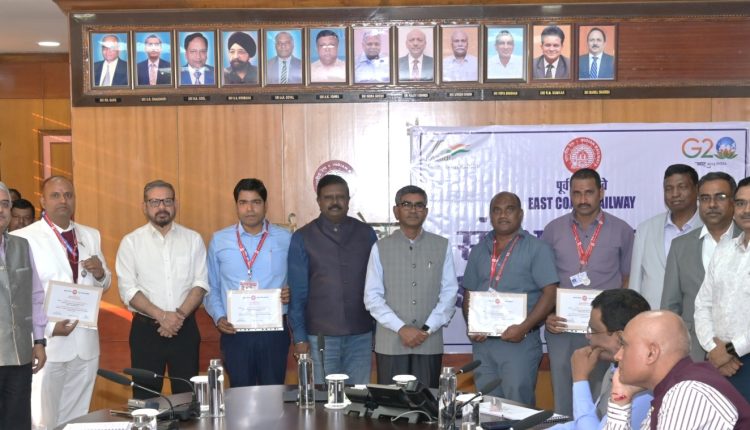 ଭୁବନେଶ୍ୱର, ୨୭/୦୧: ଉତ୍ସର୍ଗୀକୃତ ଏବଂ ସତର୍କତାକୁ ସ୍ୱୀକୃତି ଦେଇ ଏକ ପ୍ରଶଂସନୀୟ ପଦକ୍ଷେପ ସ୍ୱରୂପ ପୂର୍ବତଟ ରେଳପଥ ମହାପ୍ରବନ୍ଧକ ଶ୍ରୀ ପରମେଶ୍ୱର ଫୁଙ୍କୱାଲ ଟ୍ରେନ ପରିଚାଳନାର ନିରାପତ୍ତା ଏବଂ ଦକ୍ଷତା ସୁନିଶ୍ଚିତ କରିବାରେ ଉଲ୍ଲେଖନୀୟ କାର୍ଯ୍ୟଦକ୍ଷତା ଏବଂ ସତର୍କତା ପାଇଁ ଚାରି ଜଣ ରେଳ କର୍ମଚାରୀଙ୍କୁ ସମ୍ମାନିତ କରିଛନ୍ତି |