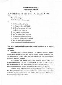 ୨୦୨୫ ଅକ୍ଟୋବର ୧୬ ଏବଂ ୨୪ରେ ୨ଥର ବଦଳି ବିଜ୍ଞପ୍ତି ଜାରି ହୋଇଥିଲା। ସମ୍ପୃକ୍ତ ଅଧିକାରୀ ନିଜ ସ୍ଥାନ ନଛାଡ଼ିବାରୁ ସରକାରୀ କାର୍ଯ୍ୟ ବାଧାପ୍ରାପ୍ତ ହେଉଛି। ସରକାରୀ ବିଶୃଙ୍ଖଳା ଭାବେ କାହିଁକି ଗ୍ରହଣ କରାନଯିବ ଦର୍ଶାଇବାକୁ ନୋଟିସ ଜାରି କରାଯାଇଛି।