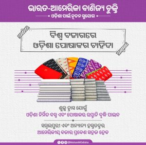 ଓଡ଼ିଶାର ହସ୍ତତନ୍ତ ହେଉ କିମ୍ବା ଆଧୁନିକ ରେଡିମେଡ୍ ପୋଷାକ ସବୁଠି ପହଞ୍ଚିବ। ଶୁଳ୍କ କୋହଳ ହେବା କାରଣରୁ ରପ୍ତାନି ସହଜ ହେବ। ବୁଣାକାର ଓ ହସ୍ତତନ୍ତ ଶିଳ୍ପୀଙ୍କ ପାଇଁ ରୋଜଗାରର ନୂଆ ପଥ ଉନ୍ମୁକ୍ତ କରିବ। ବିଶ୍ୱ ଦରବାରରେ ଓଡ଼ିଶାର ପାରମ୍ପରିକ ପୋଷାକ ଏକ ନୂଆ ଟ୍ରେଣ୍ଡ୍ ସୃଷ୍ଟି କରିବ। ସମ୍ବଲପୁରୀ ଓ ଅନ୍ୟାନ୍ୟ ହସ୍ତତନ୍ତ ଆମେରିକା ବଜାରରେ ପ୍ରବେଶ ସହଜ ହେବ।