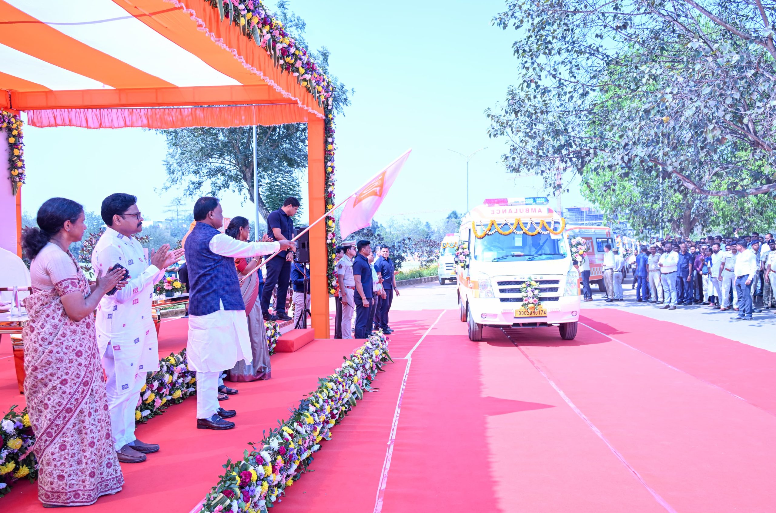 ଭୁବନେଶ୍ୱର, ୧୦/୦୨: ଆମ୍ବୁଲାନ୍ସ ସେବାର ଦକ୍ଷତା ଆଣି କମ୍ ସମୟରେ ରୋଗୀଙ୍କୁ ହସ୍ପିଟାଲ ପହଞ୍ଚାଇବା ଲକ୍ଷ୍ୟରେ ମୁଖ୍ୟମନ୍ତ୍ରୀ ଶ୍ରୀ ମୋହନ ଚରଣ ମାଝୀ ଆଜି କଳିଙ୍ଗ ଷ୍ଟାଡିୟମ ଠାରେ ଦ୍ବିତୀୟ ପର୍ଯ୍ୟାୟରେ ୨୫୦ଟି ନୂଆ ଆମ୍ବୁଲାନସର ଶୁଭାରମ୍ଭ କରିଛନ୍ତି।