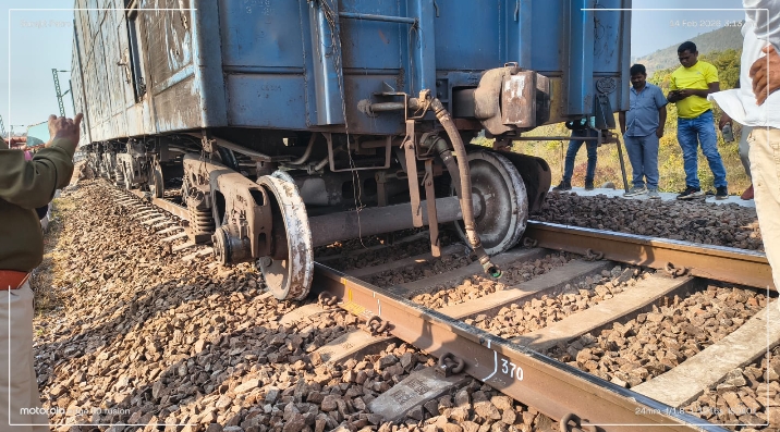 କିରୁଣ୍ଡଲ ଠାରୁ ଲୁହାପଥର ବୋଝେଇ ହୋଇ ଆସୁଥିବା ବେଳେ ଗୋଟିଏ ବଗି ଲାଇନଚ୍ୟୁତ ହୋଇଛି। ଘଟଣାସ୍ଥଳରେ ଉଦ୍ଧାରକାରୀ ଦଳ ପକ୍ଷରୁ ଉଦ୍ଧାର କାର୍ଯ୍ୟ ଜାରି ରହିଛି।