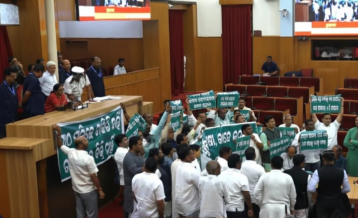 ଗୃହରେ ହାତରେ ପ୍ଲାକାର୍ଡ ଧରି ବିଜେଡି ବିଧାୟକ ହୋହଲ୍ଲା ଓ ନାରାବାଜି କରିଛନ୍ତି। ଚାଷୀ ମାରଣାନୀତି, ମଣ୍ଡି ସମସ୍ୟା, କଟନୀଛଟନୀ ପ୍ରସଙ୍ଗକୁ ନେଇ ହୋହଲ୍ଲା କରିଛନ୍ତି। ବାଚସ୍ପତିଙ୍କ ପୋଡିୟମ ପାଖରେ ବିରୋଧୀ ସଦସ୍ୟଙ୍କ ପ୍ରବଳ ହଙ୍ଗାମା ଯୋଗୁଁ ଗୃହ ମୁଲତବି ରଖାଯାଇଛି।