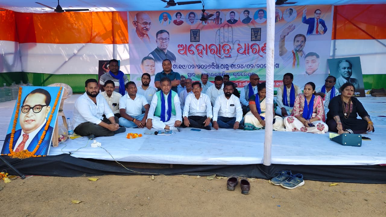 ଓପିସିସି ଅନୁସୂଚିତ ଜାତି କଂଗ୍ରେସ ଓ ଆଦିବାସୀ କଂଗ୍ରେସ ପକ୍ଷରୁ ଧାରଣା ୩ୟ ଦିନରେ