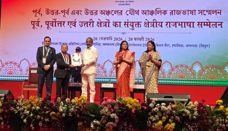 ଏହି ସମ୍ମାନ ୨୦ ଫେବୃଆରୀ ୨୦୨୬ ତାରିଖରେ ଅଗରତଲା, ତ୍ରିପୁରାରେ ଆୟୋଜିତ ଗୃହ ମନ୍ତ୍ରାଳୟର ରାଜଭାଷା ବିଭାଗର ପୂର୍ବ, ପୂର୍ବୋତ୍ତର ଏବଂ ଉତ୍ତର କ୍ଷେତ୍ରର ସଂଯୁକ୍ତ ରାଜଭାଷା ସମ୍ମେଳନ ସମୟରେ ମାନ୍ୟବର କେନ୍ଦ୍ରଗୃହ ମନ୍ତ୍ରୀ ଅମିତ ଶାହଙ୍କ ଅଧ୍ୟକ୍ଷତାରେ ପ୍ରଦାନ କରାଯାଇଛି।