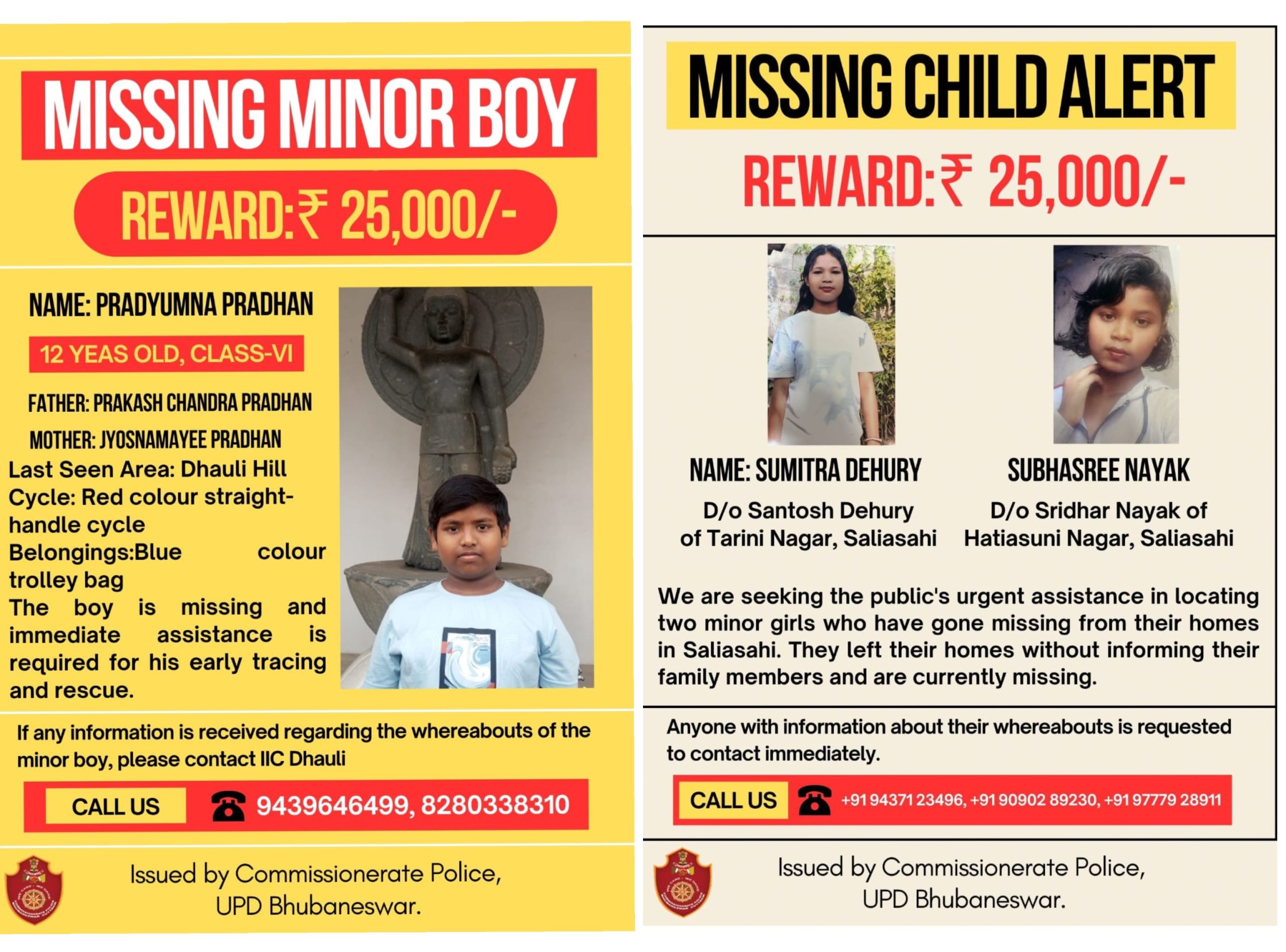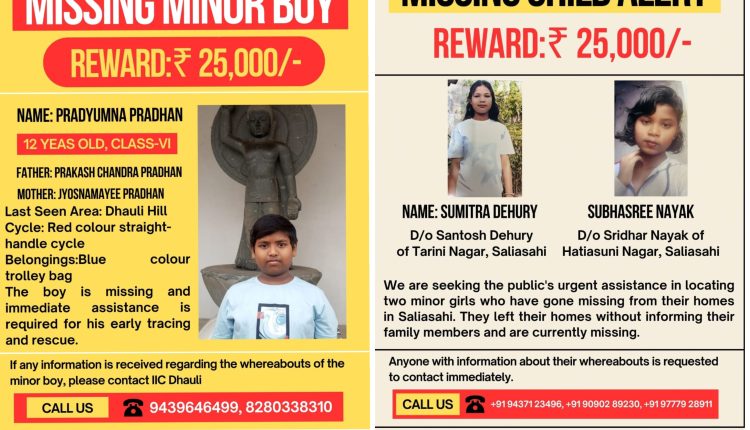 ଏଥି ସହ ନିଖୋଜ ଶିଶୁମାନଙ୍କ ସମ୍ପର୍କରେ ସୂଚନା ଦେଲେ ୫୦ ହଜାର ଟଙ୍କାର ନଗଦ ପୁରସ୍କାର ପ୍ରଦାନ କରାଯିବ ବୋଲି ଘୋଷଣା କରିଛି କମିଶନରେଟ ପୋଲିସ।