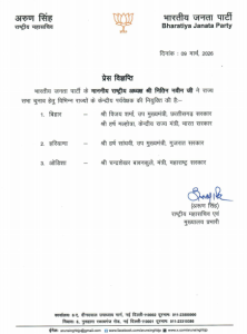 ନୂଆଦିଲ୍ଲୀ, ୦୯/୦୩: ରାଜ୍ୟସଭା ନିର୍ବାଚନ ଥିବା ବେଳେ ୩ ରାଜ୍ୟ ପାଇଁ ପର୍ଯ୍ୟବେକ୍ଷକ ନିଯୁକ୍ତ କଲା ବିଜେପି। ଓଡ଼ିଶା, ବିହାର ଓ ହରିୟାଣା ପାଇଁ ବିଜେପି ପର୍ଯ୍ୟବେକ୍ଷକ ନିଯୁକ୍ତ କରିଛି। ମହାରାଷ୍ଟ୍ର ସରକାରର ମନ୍ତ୍ରୀ ଚନ୍ଦ୍ରଶେଖର ବାବନକୁଳେ ଓଡ଼ିଶାର ପର୍ଯ୍ୟବେକ୍ଷକ ଭାବେ ନିଯୁକ୍ତ ହୋଇଛନ୍ତି। ଗୁଜରାଟ ଉପମୁଖ୍ୟମନ୍ତ୍ରୀ ହର୍ଷ ସାଙ୍ଗଭୀଙ୍କୁ ହରିୟାଣା ପର୍ଯ୍ୟବେକ୍ଷକ ଦାୟିତ୍ବ ମିଳିଥିବା ବେଳେ ଛତିଶଗଡ଼ ଉପମୁଖ୍ୟମନ୍ତ୍ରୀ ବିଜୟ ଶର୍ମା ଓ କେନ୍ଦ୍ରମନ୍ତ୍ରୀ ହର୍ଷ ମଲହୋତ୍ରାଙ୍କୁ ବିହାର ଦାୟିତ୍ବ ମିଳିଛି।