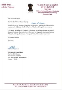 ପ୍ରଧାନମନ୍ତ୍ରୀ ଓ ରେଳମନ୍ତ୍ରୀଙ୍କୁ ଧନ୍ୟବାଦ ଜଣାଇଲେ ମୁଖ୍ୟମନ୍ତ୍ରୀ