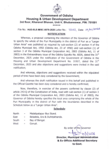 ରାଜ୍ୟ ଗୃହ ନିର୍ମାଣ ଓ ନଗର ଉନ୍ନୟନ ବିଭାଗ ପକ୍ଷରୁ ବିଜ୍ଞପ୍ତି ପ୍ରକାଶ
